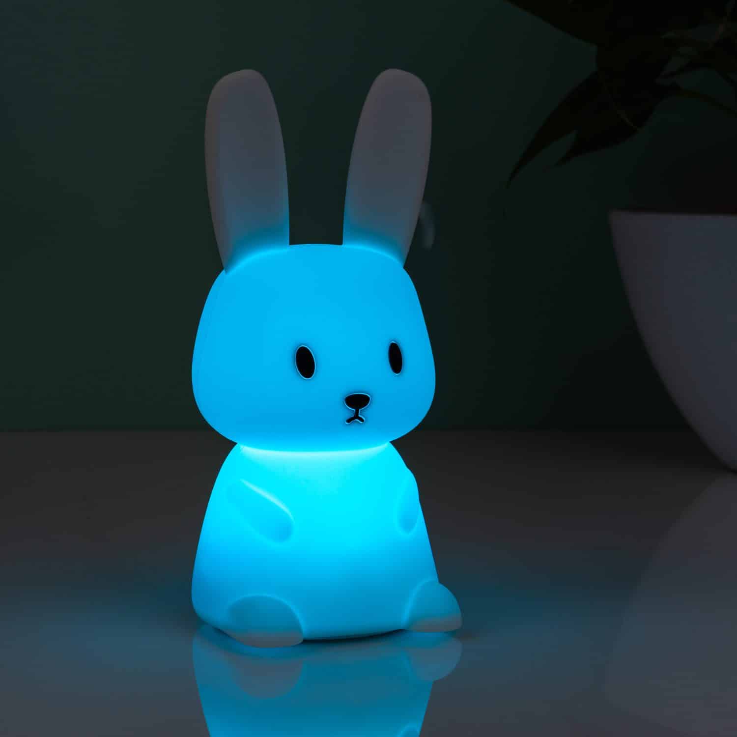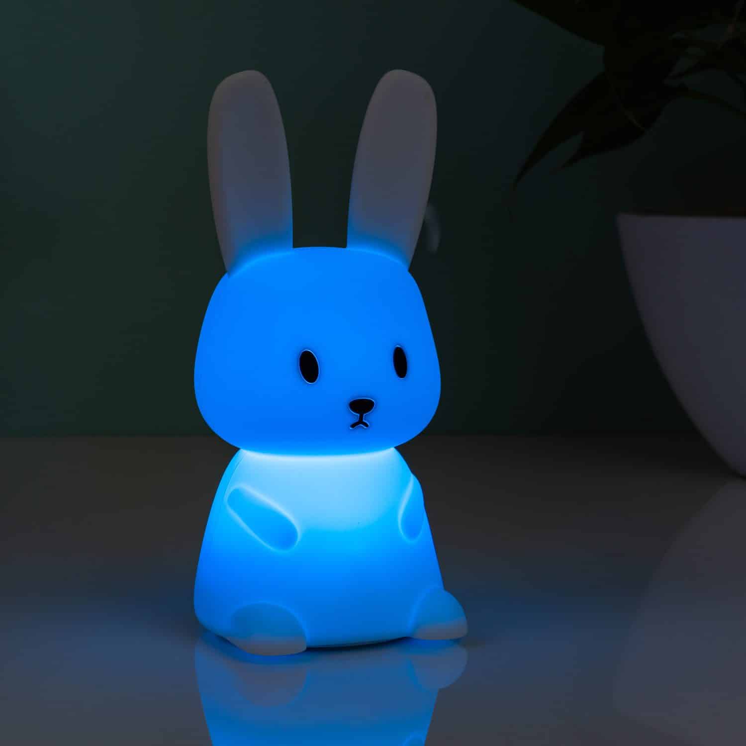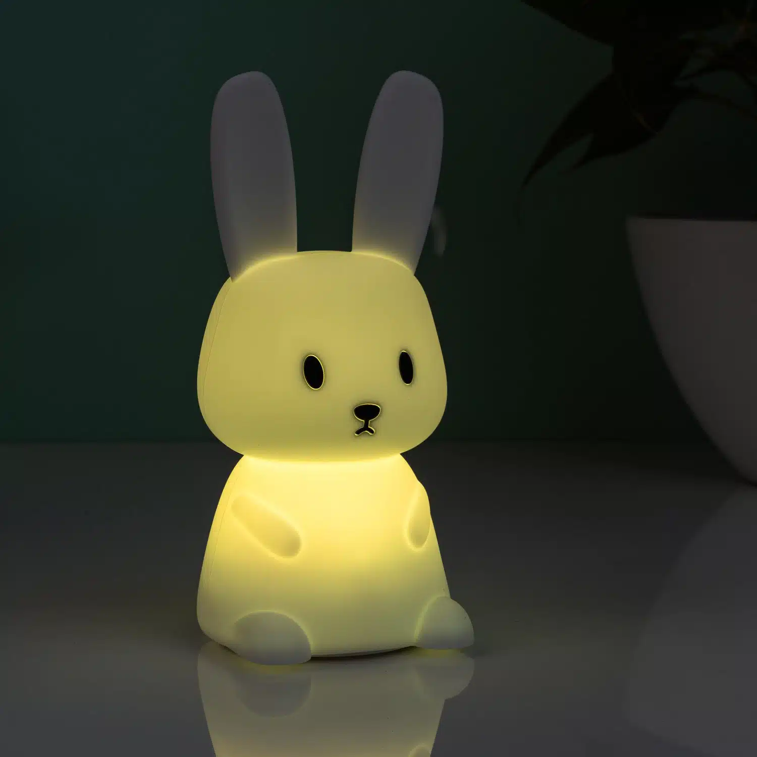 Van het Konijn nachtlampje van Winkee wordt elk kindje blij. Dit schattige konijntje houdt de wacht. Het siliconen nachtlampje geeft niet alleen warmwit licht, maar ook in heel veel andere kleuren, zoals groen, blauw, paars en rood. Heb je een kleur gevonden die je mooi vindt, dan kun je deze vastzetten door het konijn aan te raken. Met dit konijntje op het nachtkastje valt je kleintje voortaan vast heerlijk in slaap.