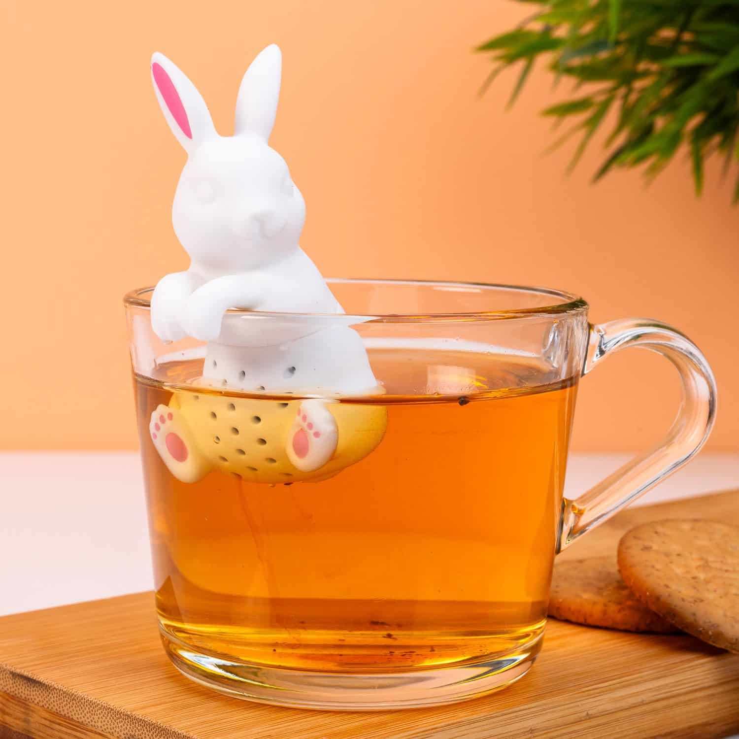 Soms moet je even een momentje voor jezelf nemen. Sluit je af van alle drukte met een heerlijke kop thee. Die zet je met de Konijn tea infuser van Winkee: deze schattige tea infuser in de vorm van een konijn tovert namelijk gegarandeerd een glimlach op je gezicht. Vul het konijntje met losse thee en hang hem aan de rand van je theeglas. Na een paar minuten heb jij een heerlijk glas thee.