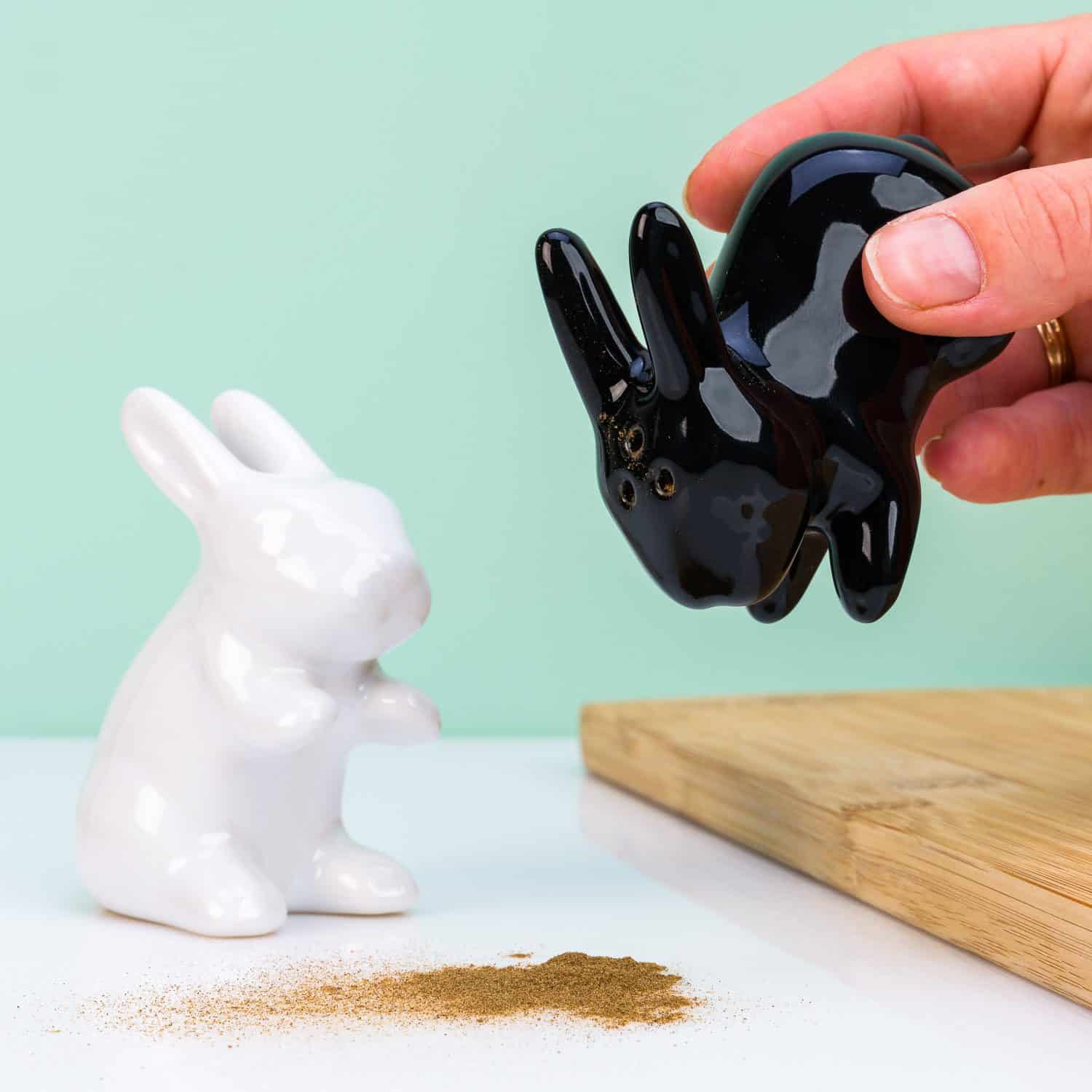 Zoek je een brutaal cadeautje? Kies voor het Konijnen peper- en zoutstel van Winkee. De konijnen doen wat konijnen het beste doen: voor nageslacht zorgen. Dit grappige setje zorgt er zeker voor dat je eettafel wordt opgepept. Ze zijn eenvoudig te vullen met peper en zout. Wist je dat peper- en zoutstellen vroeger aan bruidsparen cadeau werden gegeven? Dit setje is heel geschikt als stout huwelijkscadeautje!