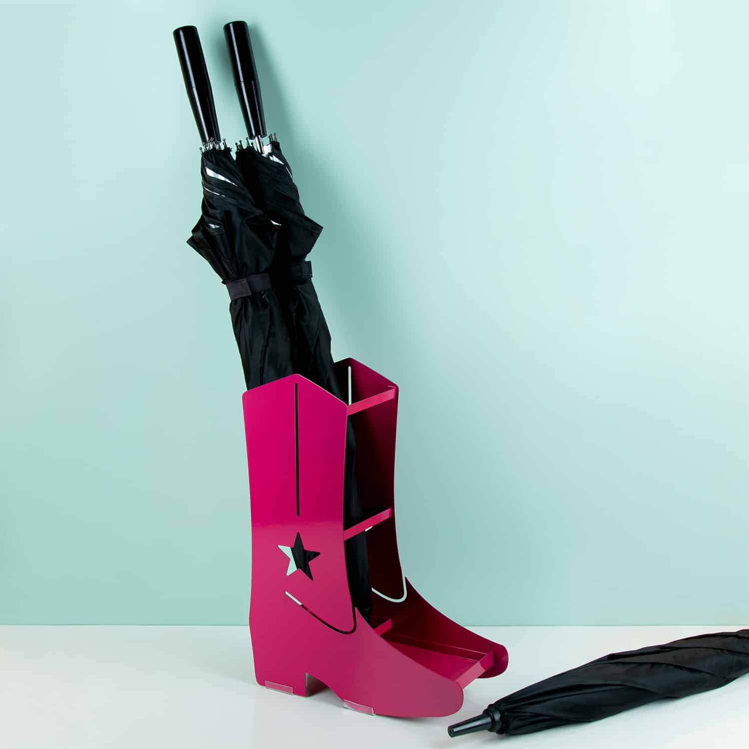 Zet je natte paraplu niet tegen de muur in de gang, maar laat hem uitdruppen in de Laars parapluhouder van Balvi. Deze originele parapluhouder is perfect voor natte paraplu’s. Het water druppelt in het opvangbakje aan de onderkant en door de open voor- en achterkant drogen paraplu’s makkelijk op. Bovendien is het uiterlijk van de parapluhouder – een laars – natuurlijk super grappig! In totaal is er ruimte voor maar liefst negen grote paraplu’s.