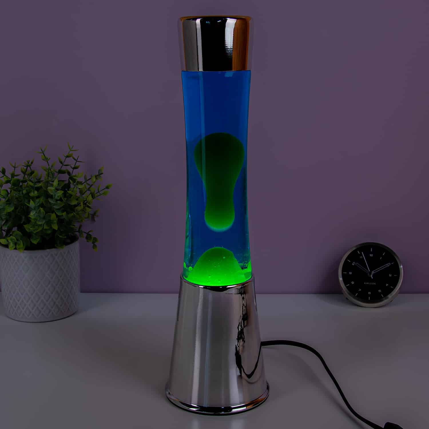 Ben jij dol op coole retro items? Dan is de Lavalamp zilver met groene lava van Fisura misschien iets voor jou. Deze lavalamp heeft een zilveren basis, met blauwe vloeistof en waar groene lava in bubbelt. Door zijn opvallende kleuren is het een unieke toevoeging in je interieur. Ook leuk om cadeau te geven aan liefhebbers van retro interieurs.