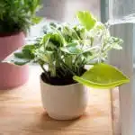 • Steek het blad in de potgrond en giet het water op het blaadje