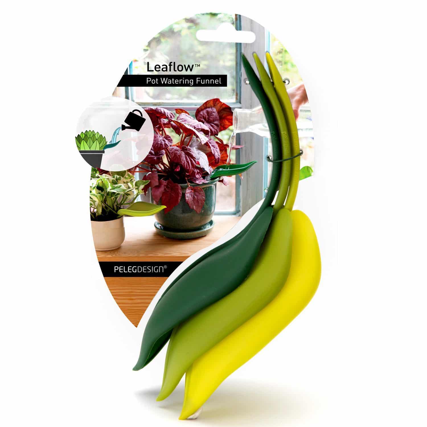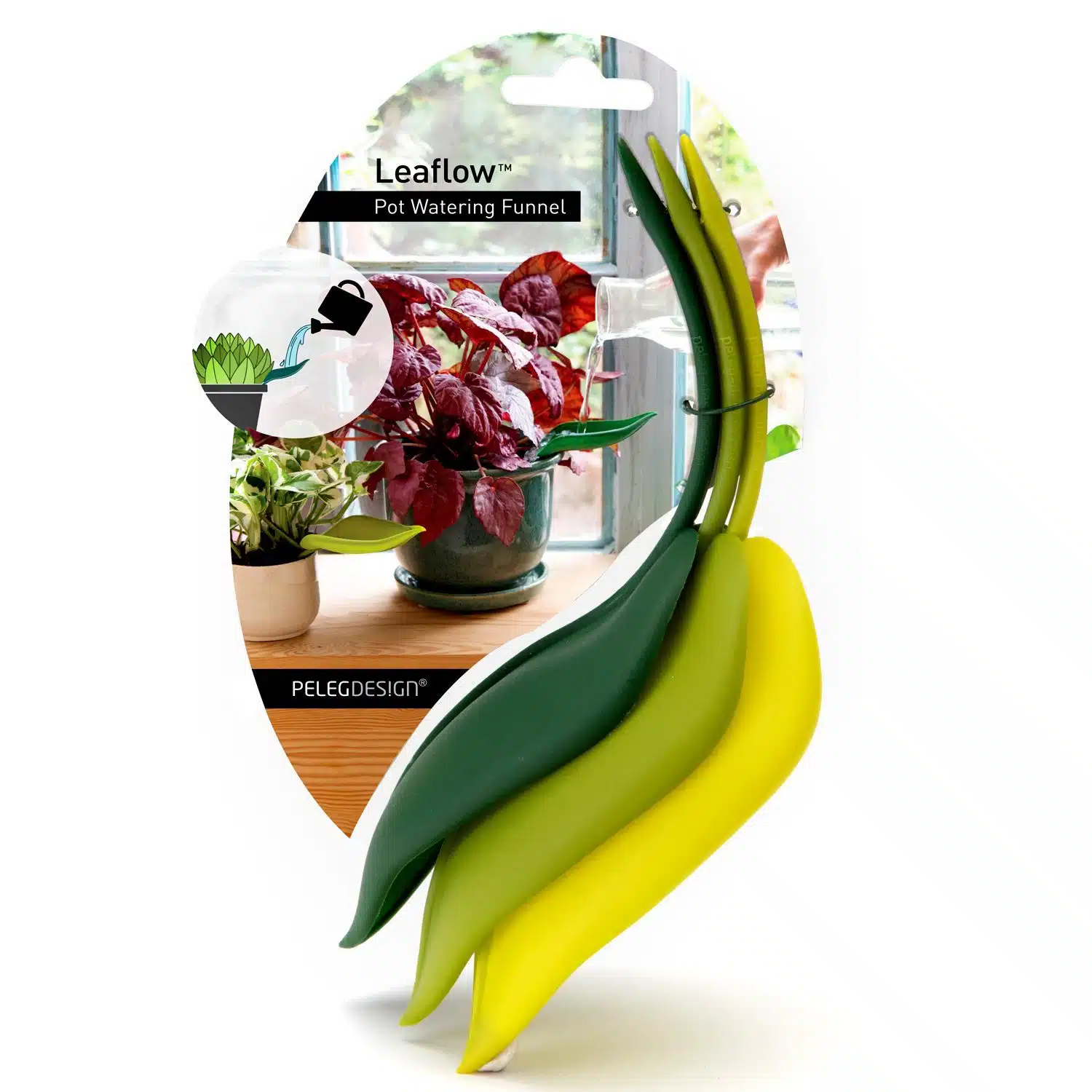 Soms kun je nog zo goed richten, je weet maar nooit wanneer er chaos ontstaat. Mannen hebben dat regelmatig in de wc. En het kan jou ook overkomen. Als je je planten water wilt geven bijvoorbeeld en je kunt niet goed onder de bladeren gieten. Dan spettert het water alle kanten op, zonder daadwerkelijk de potgrond te raken. Met de Leaflow bewateringstunnel van Peleg Design voorkom je gesmeer met water. Je steekt één van de drie watertunnels in de vorm van een blad in de potgrond. Vervolgens giet je water in het blaadje. Het water loopt keurig naar de wortels van je plant toe. In een set zitten drie watertunnelblaadjes.