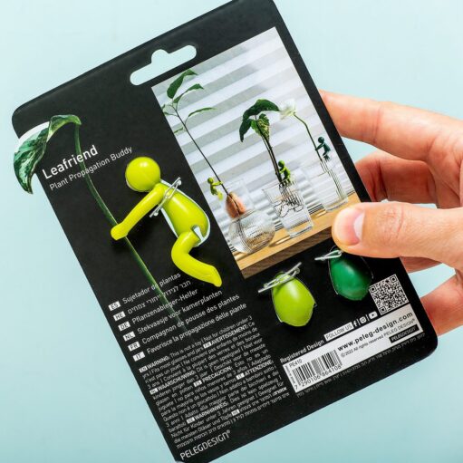 Ben je dol op planten en wil je je hele huis vol zetten? Met de Leafriend stekjeshouder (set van 3) van Peleg Design wordt dat een stuk makkelijker. Deze handige poppetjes, in verschillende tinten groen, houden het stekje voor je vast in het vaasje. Je klemt de poppetjes met hun billen aan een vaasje of glas en steekt het stekje in hun handen. Zo kan het stekje ontwortelen voor je het in een bloempot zet.