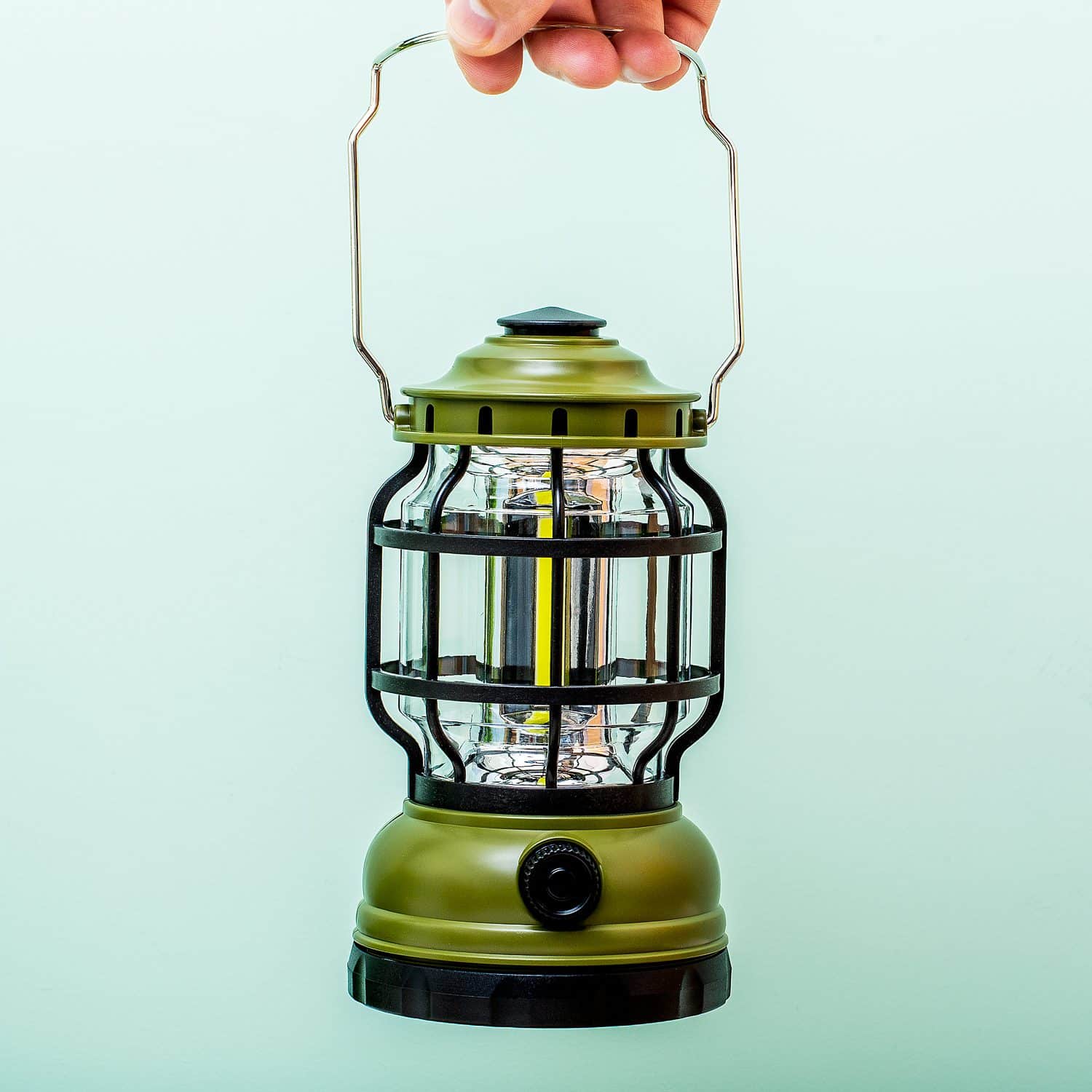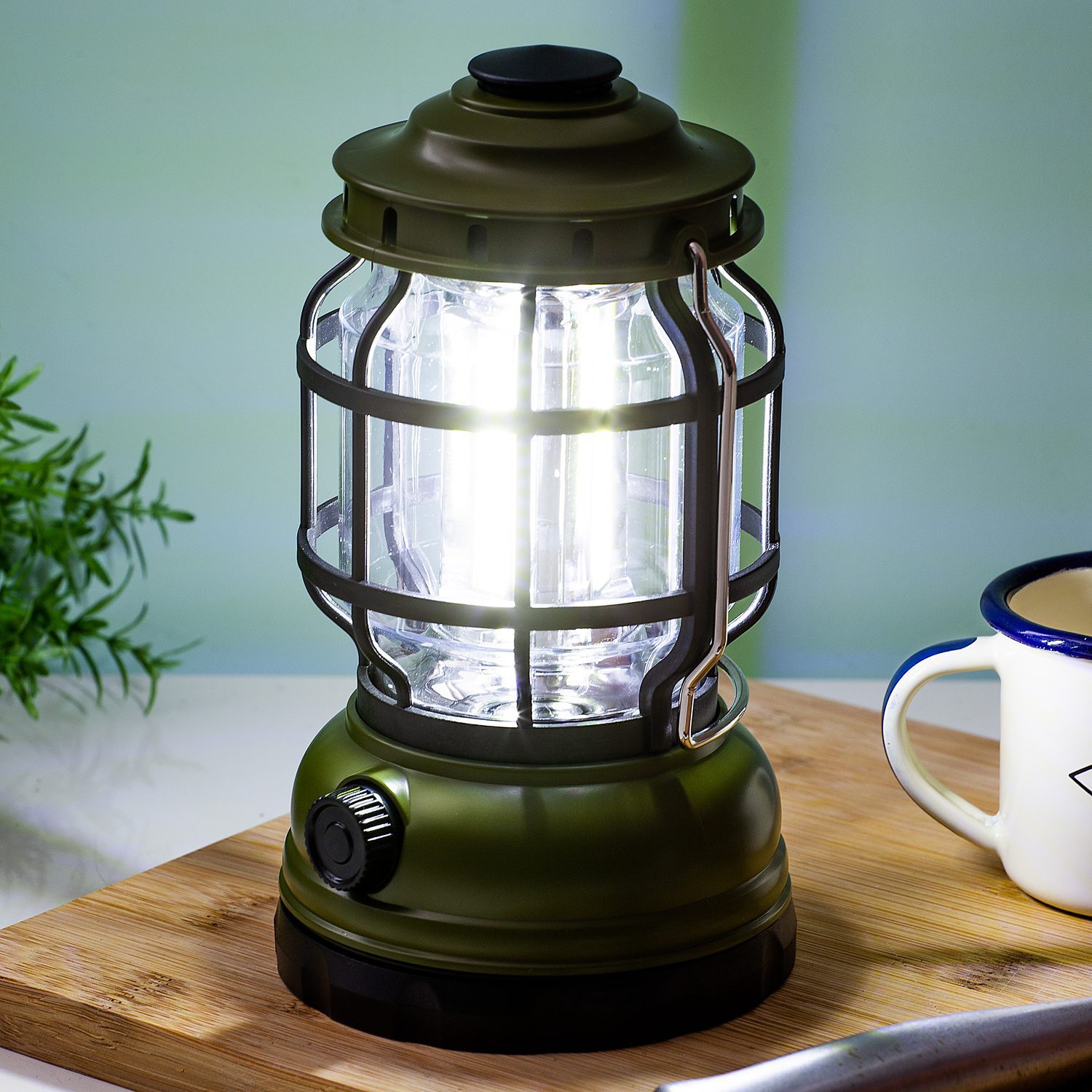 • Stijlvolle olijfgroene led-kampeerlamp