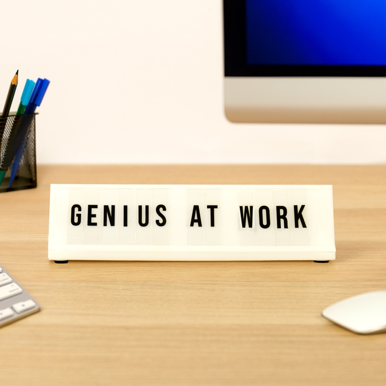 Maak je bureau persoonlijk met het Lichtgevend naambord van Gift Republic. Dit is een lightbox voor op je bureau die je kunt personaliseren met de meegeleverde letters en cijfers. Schrijf je naam (‘the genius’, bijvoorbeeld) op de lichtbox, dan weet elke collega hoe hij je mag aanspreken. Het bordje geeft licht in tien verschillende kleuren of kies voor een vrolijk kleurverloop. Perfect voor op je thuiskantoor, bureau op werk of als grappig cadeau voor een collega. Want waarom saai als het ook lichtgevend kan?