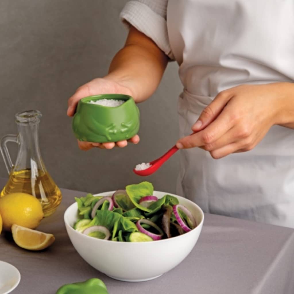 Kies voor een uitgesproken smaak met Lily! Deze zoutpot in de vorm van een kikker heeft een rode lepel die eruitziet als een uitgestoken tong – perfect om zout, suiker of kruiden te strooien. Een leuk cadeau voor kookliefhebbers!