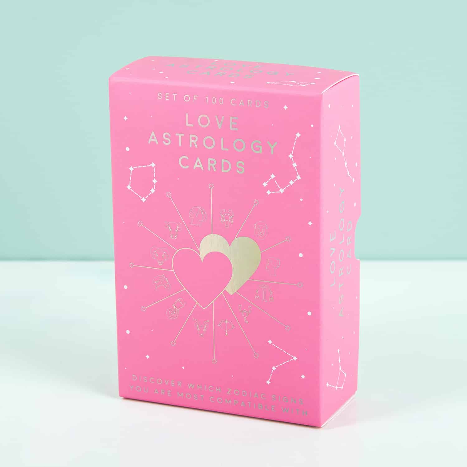 Heb je een leuke date, maar wil je graag van tevoren al weten of jullie bij elkaar passen? Met de Love Astrology kaarten van Gift Republic kom je hier achter. Deze kaartenset bestaat uit honderd kaarten en vertelt je alles over de sterrenbeelden. Wanneer ben je welk sterrenbeeld, wat zijn de eigenschappen die daarbij passen en met welke sterrenbeelden ben jij het meest compatibel? Het is een leuke manier om te ontdekken of jullie geschikt zijn voor elkaar.