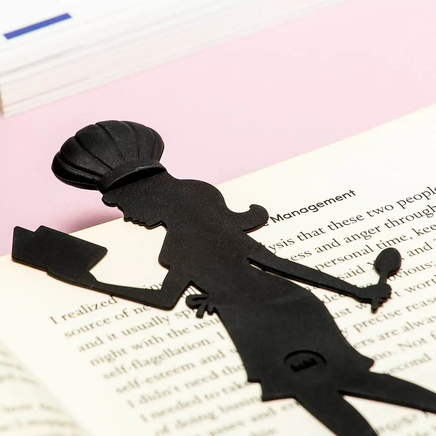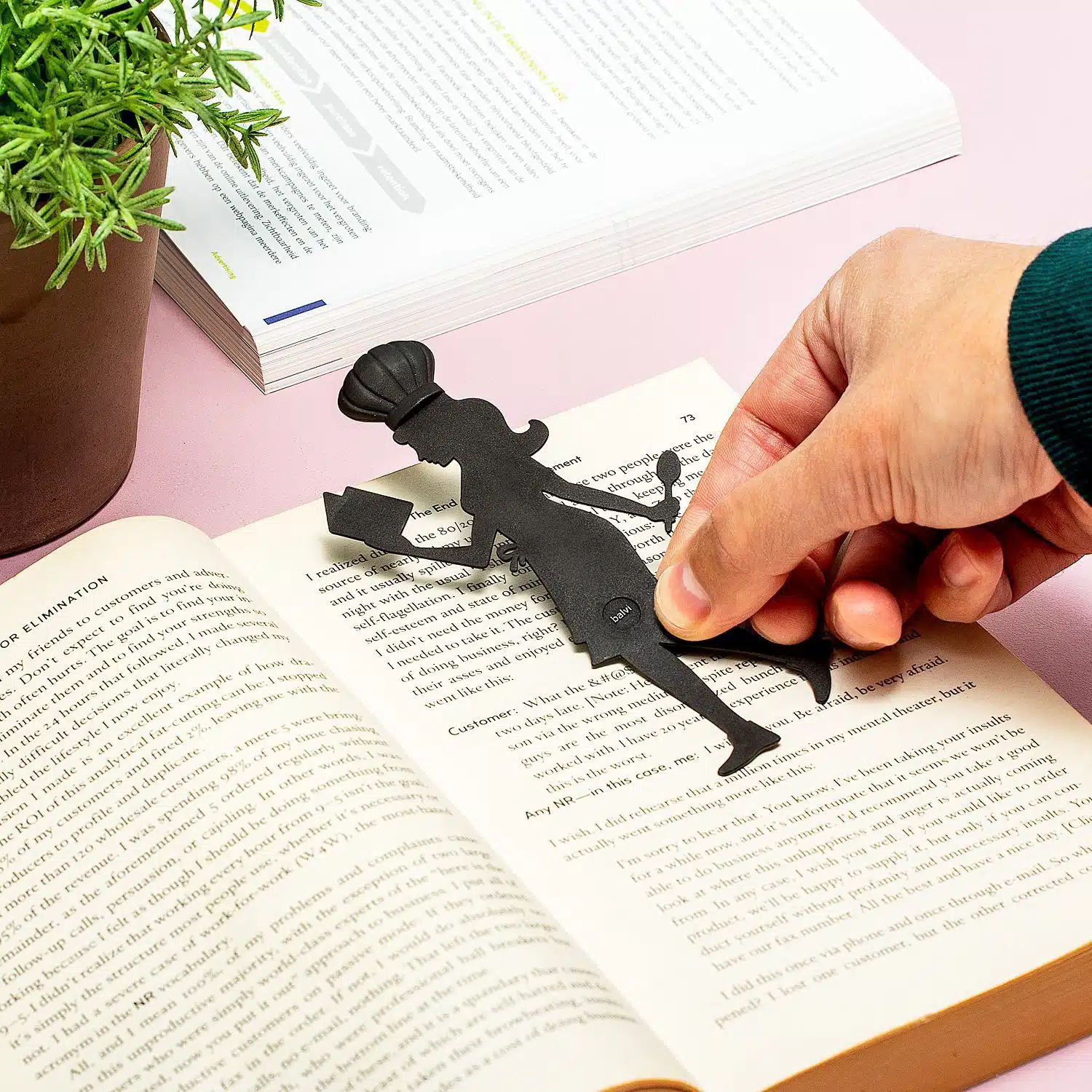 Bakken kan een chaotische klus zijn: stuivend meel, kapotgevallen eieren, een weegschaal zonder batterijen en dat ook nog een kookboek dat steeds dichtklapt. Nee, de Madeleine boekenlegger van Balvi komt niet ongelegen als jij aan het bakken bent. Deze leuke bladwijzer ziet eruit als een bakker: ze heeft een kookboek en pollepel in haar hand en een koksmuts op haar hoofd. Deze is wat dikker dan de rest, zodat de muts boven de pagina’s uit blijft steken. Zo vind je het recept altijd makkelijk terug.