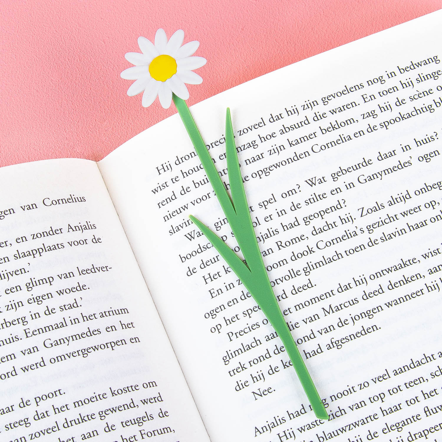 Wat doe je als je lekker zit te lezen en opeens moet stoppen? Laat gewoon een bloemetje achter. De Madeliefje boekenlegger van Balvi schuif je tussen de pagina’s, terwijl het madeliefje vrolijk boven je boek uitsteekt. Zo vind je je plek in één oogopslag terug én ligt er meteen een klein bloemetje op je nachtkastje te stralen.