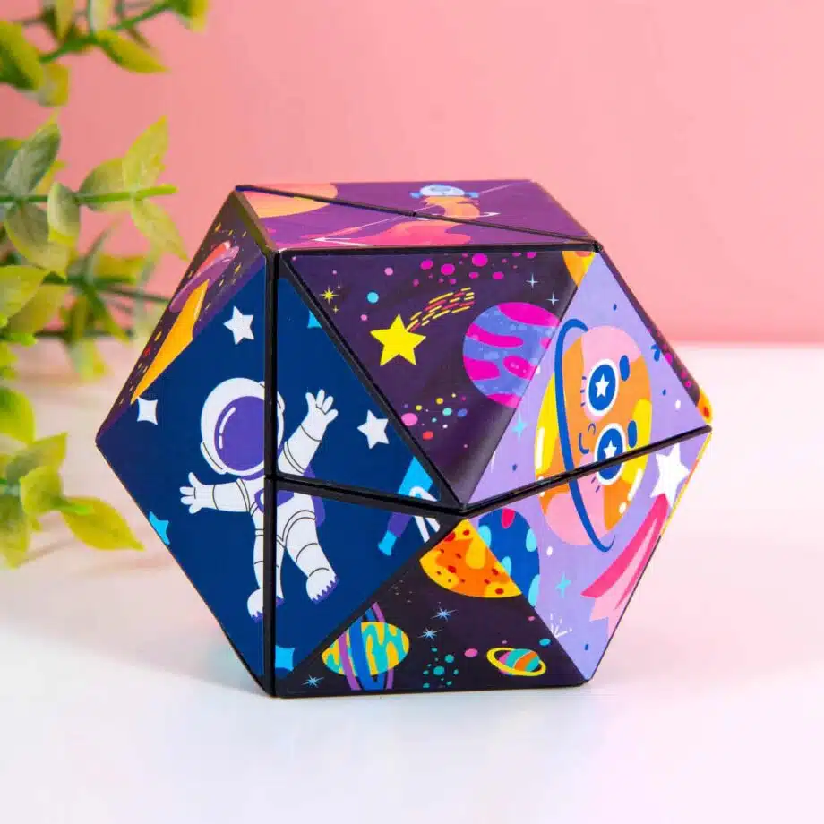 - Kubus met ruimtethema die allerlei verschillende vormen heeft