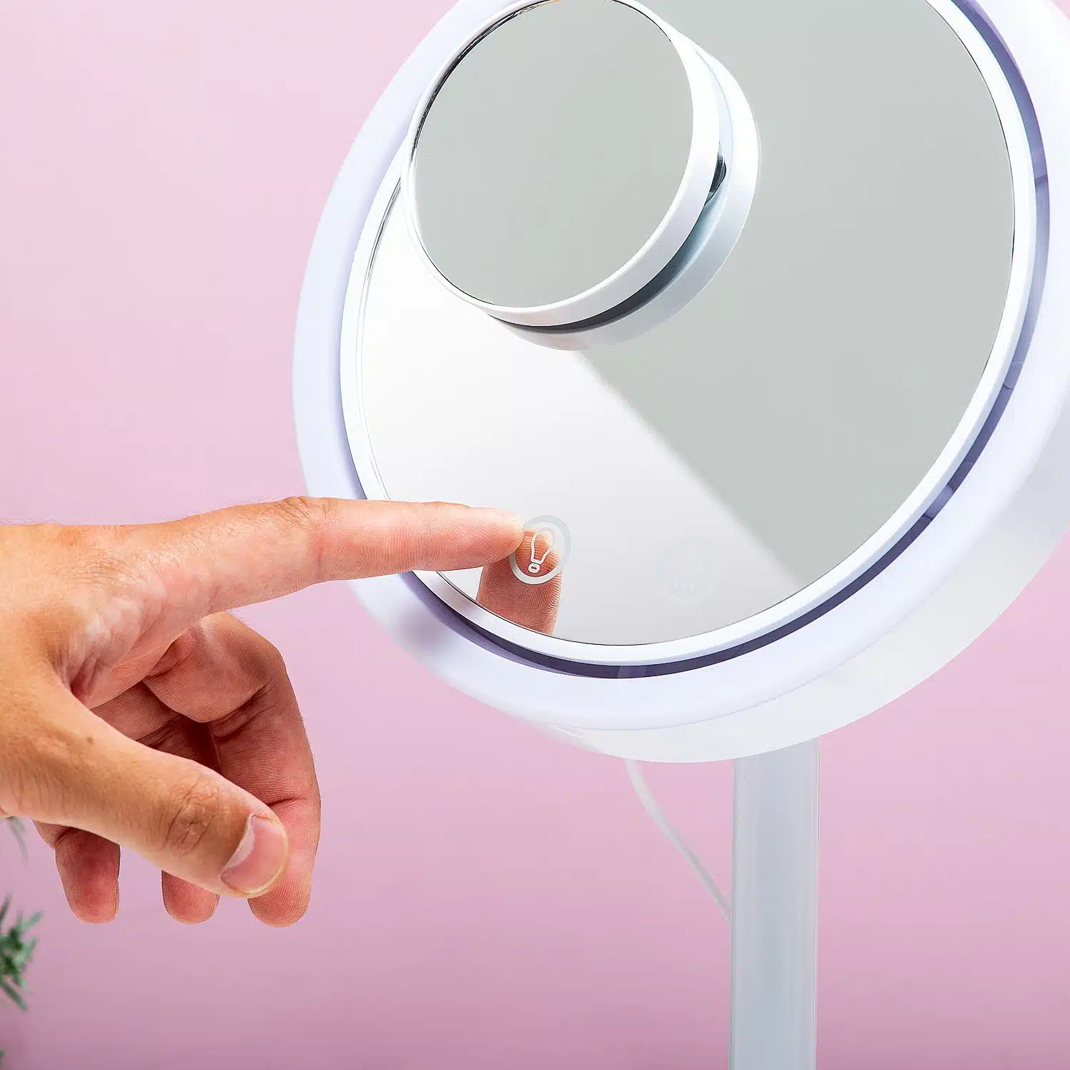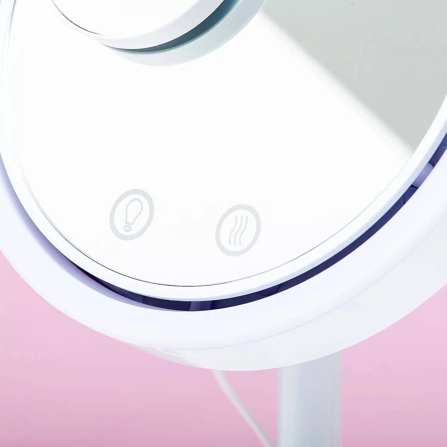 Heb jij na het douchen ook altijd een zweetsnor en kun je dan niet vlekvrij je make-up aanbrengen? De Make-up spiegel met verlichting en ventilator van Winkee helpt bij dit probleem. Deze spiegel heeft een ventilator, die zachtjes frisse lucht blaast. Daarnaast heeft de spiegel ledverlichting en een los vergrotend spiegeltje. Zowel de ventilator als de ledverlichting heeft drie standen en deze zijn los van elkaar in te stellen.