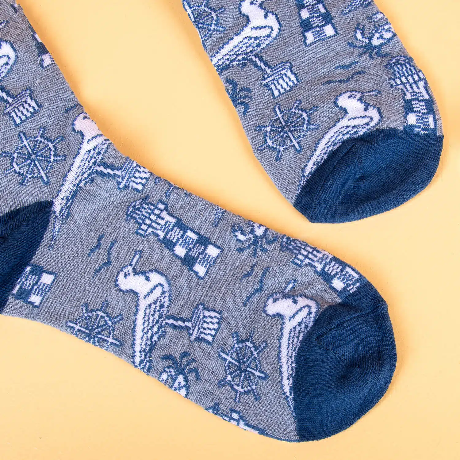 De Maritiem sokken zijn er voor iedereen die van de zee houdt. Met zeemeeuwen, ankers, vuurtorens en maritieme symbolen. Perfect voor zeilers, strandliefhebbers of gewoon als grappig cadeau voor iemand die altijd over die ene zeilvakantie blijft praten. Eén blik en je ruikt de zeelucht al (of zijn het je voeten?).