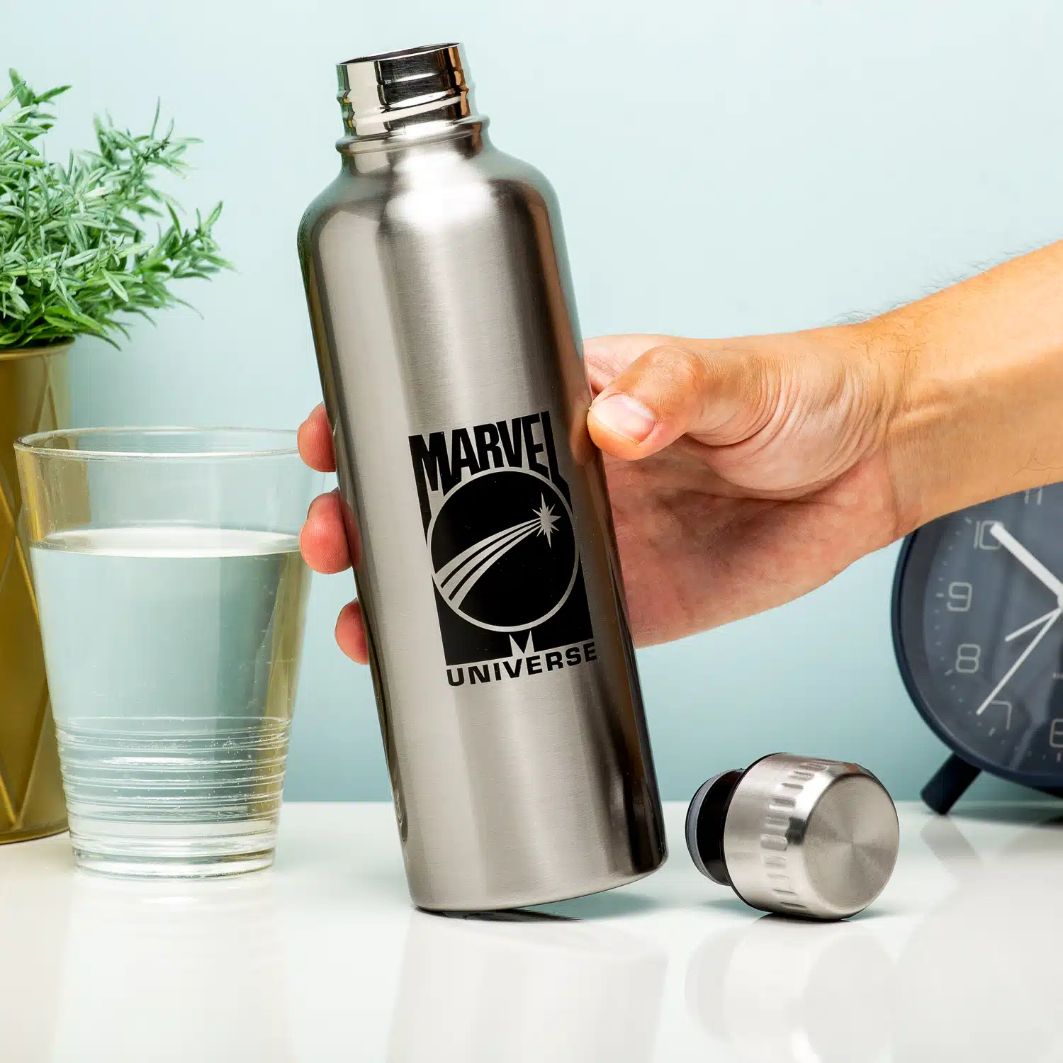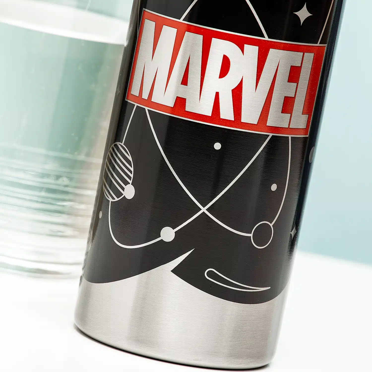 Dubbelwandige rvs fles met op de voorkant het herkenbare rode Marvel logo met daaromheen een illustratie gebaseerd op het universum. Op de achterkant van de thermosfles staat een ander Marvel Universe logo. De thermosfles is perfect voor het meenemen van warme en koele dranken. Door het dubbelwandige staal blijft de drank extra lang warm of koud.