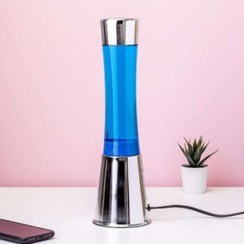 Lavalamp zilver met blauwe vloeistof en navy lava