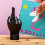 • Fotohouder in de vorm van een hand die de middelvinger opsteekt