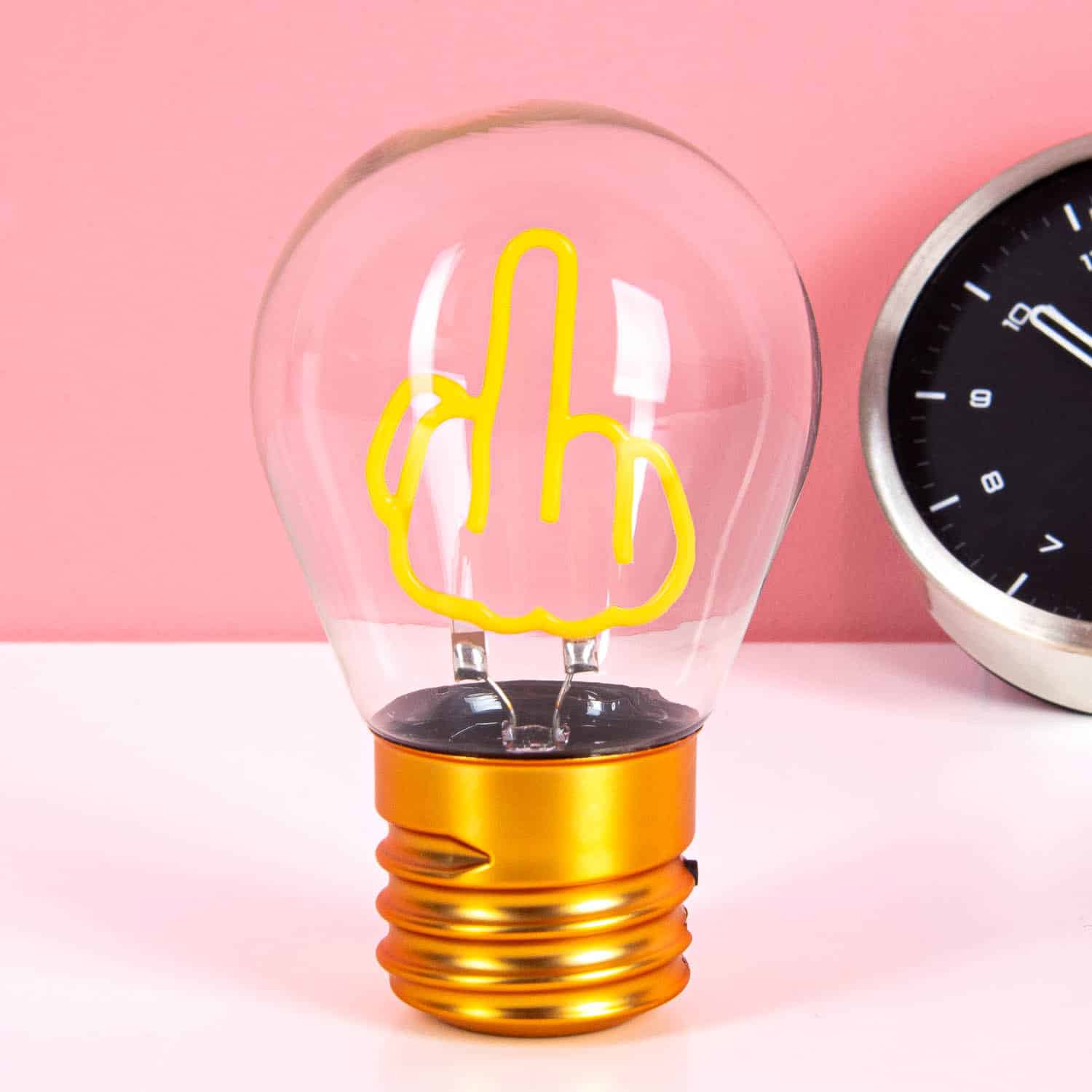 Het is de perfecte sfeerverlichting voor opstandige tieners en ieder ander die graag met zijn handen praat: deze Middelvinger lamp. Het lijkt een gewone lamp, maar aan de binnenkant zie je een ledhand die zijn middelvinger opsteekt.
