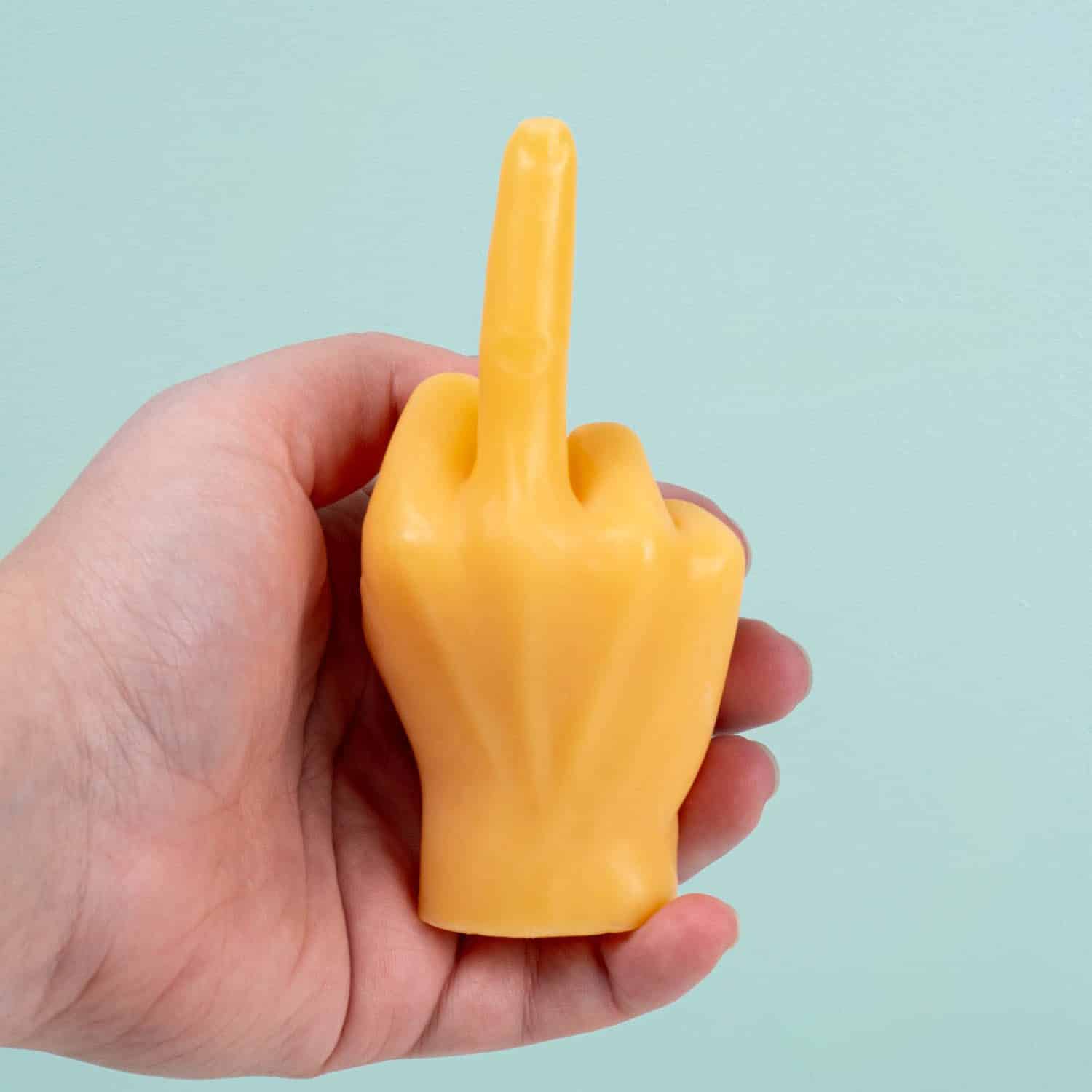 Zure types heb je overal. Zelfs in je huis af en toe. Geef ze (subtiel) de vinger met de Middelvinger zeep van Out of the Blue. Deze hilarische handzeep ziet eruit als een hand met opgestoken middelvinger. Hij heeft, heel toepasselijk, de geur van zure druiven. Ook een mooi cadeau voor iemand die altijd maar loopt te zeiken.