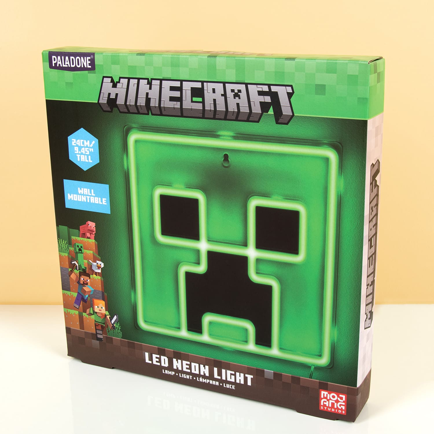 Wil jij een kamer in de sfeer van je favoriete game? Hang dan de Creeper muurlamp van Minecraft op! Deze grappige lamp heeft de looks van het (transparante) hoofd van een Creeper. Het lijkt op een neon lamp, maar is gewoon gemaakt van energiezuinige ledlampen die groen licht geven. Hang hem boven je computer of op een andere plek waar je graag gamet en geniet van de perfecte sfeerverlichting.