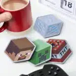 - Set van 4 metalen onderzetters met Minecraft-motieven