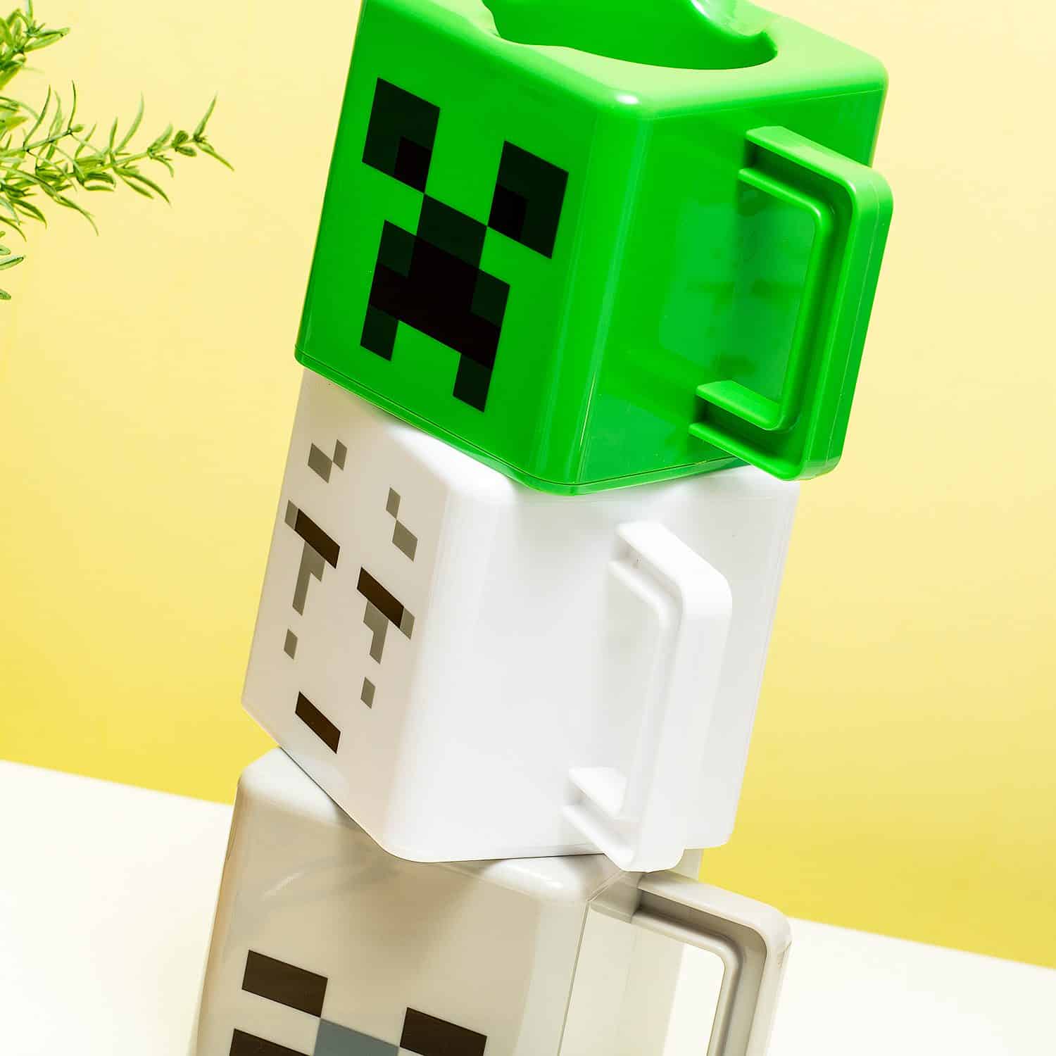 De makkelijkste manier om je kind aan het drinken te krijgen? Door de Stapelbare mokken (set van 3) van Minecraft te gebruiken natuurlijk. Deze set van drie mokken bestaat uit bekers in de vorm van een Creeper, Skeleton en Ghast. Ze kunnen opgestapeld worden voor een indrukwekkende hostile mob in je keukenkastje, maar doen het natuurlijk nog beter op tafel. Zo maakt je kind zeker indruk op de vriendjes die komen spelen.