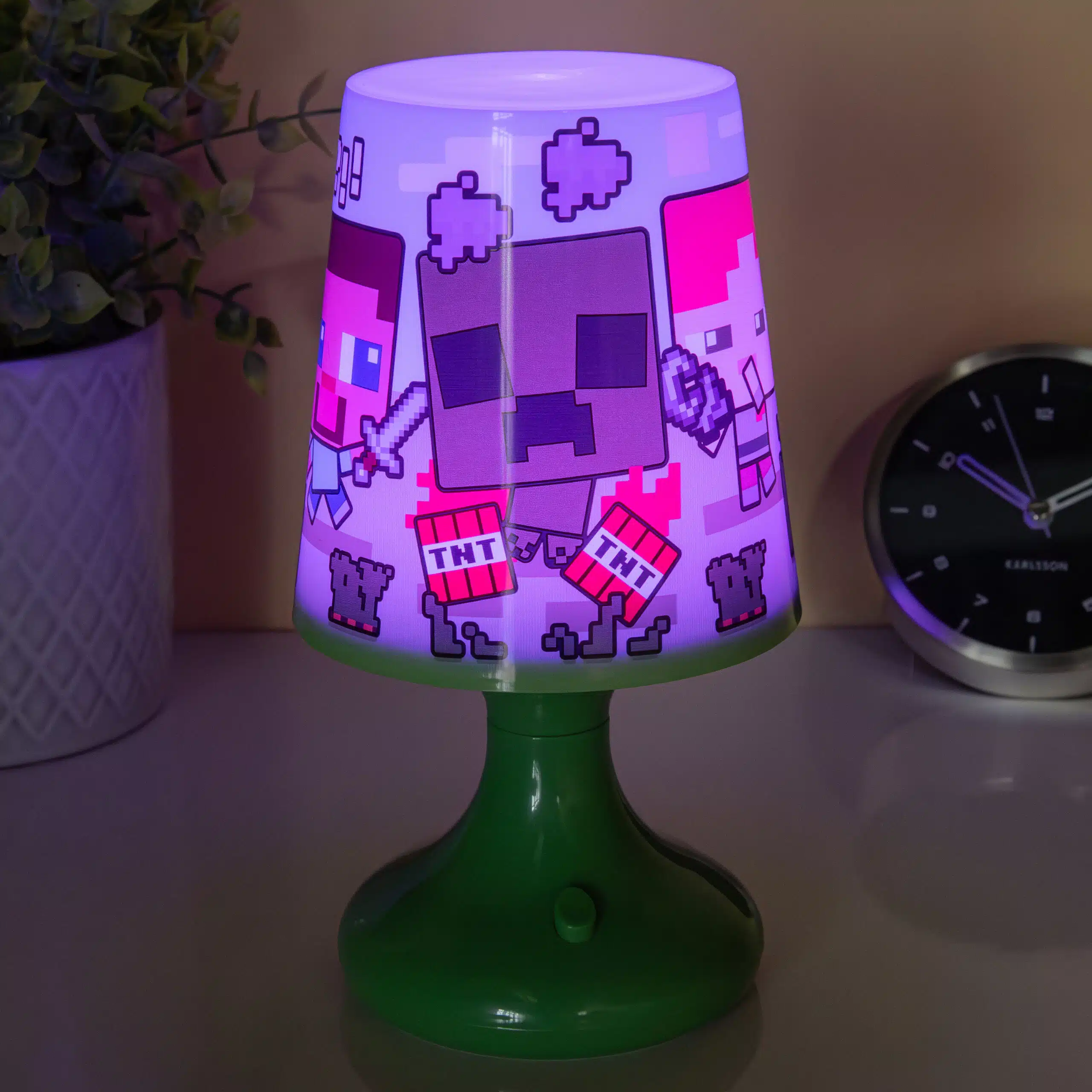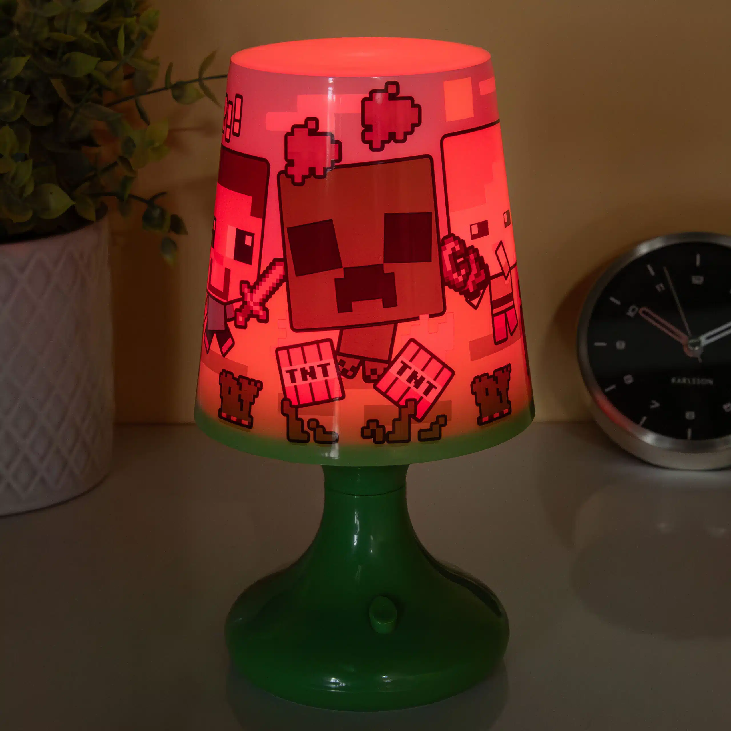 Als je kind nog even wil lezen in bed of liever niet in het donker gaat slapen, dan hebben wij iets leuks voor hem of haar: de USB schemerlamp van Minecraft. Dit leuke lampje heeft een groene voet en bekende Minecraft figuren op de kap, zoals Alex, Steve, TNT-blokken en een Creeper. Het lampje geeft licht in twee verschillende modussen: gewoon constant brandend of met kleurfasering. We weten zeker dat je hiermee punten scoort bij de kleine Minecraft fan!