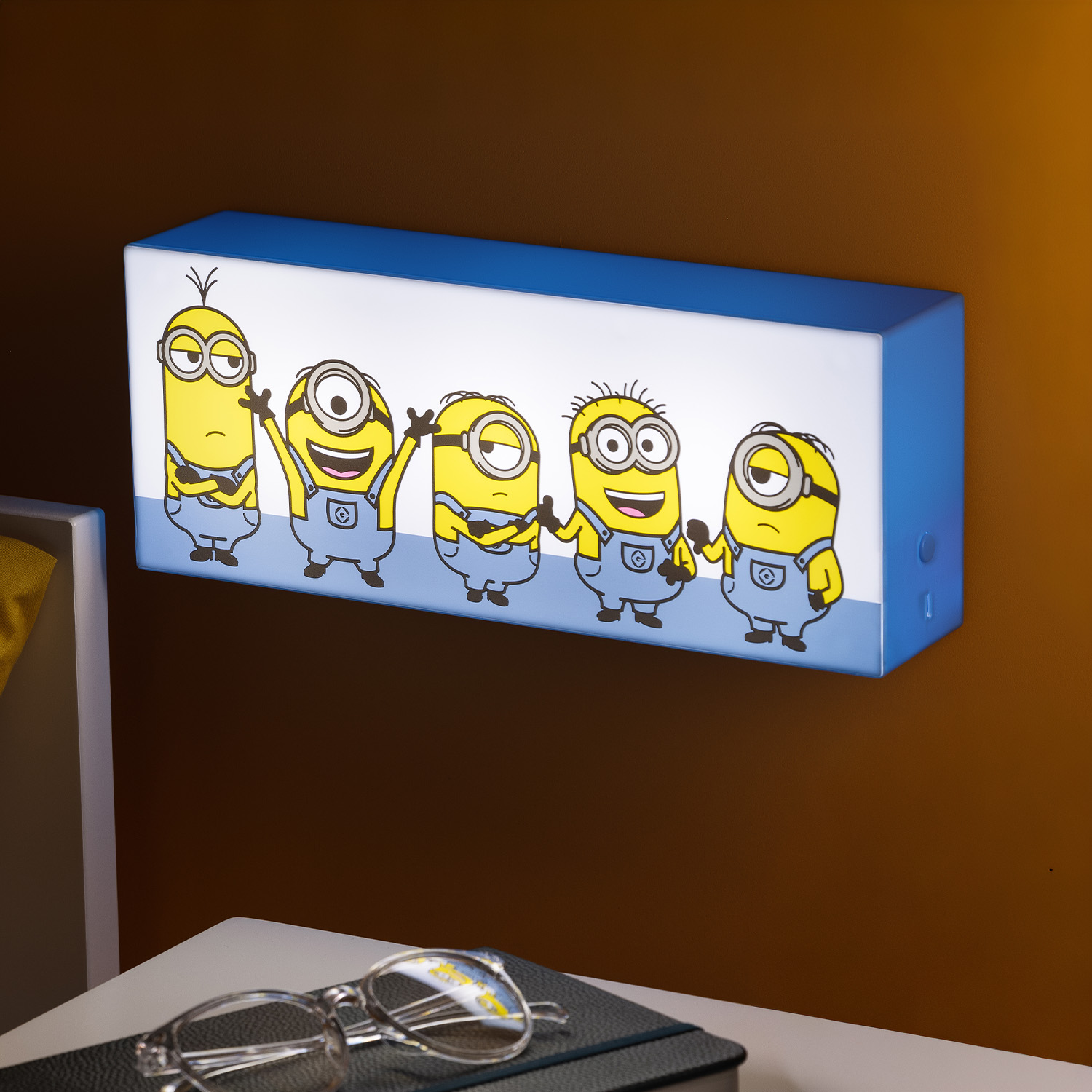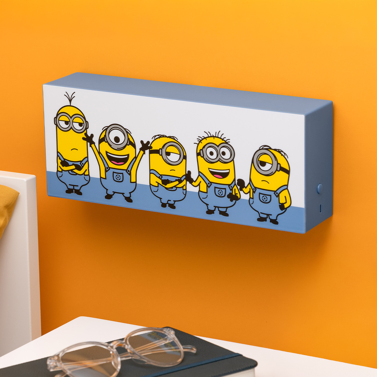 Breng direct een flinke dosis Minions-chaos in huis met deze Minions lamp. De bekende gele helden, van Kevin tot Bob, zorgen samen voor een vrolijke lichtshow in je kamer. Zet hem neer op je bureau of hang hem aan de muur voor extra effect. Met verschillende lichtstanden geef je jouw kamer precies de sfeer die je wilt. Perfect voor fans van Despicable Me of iedereen die wel wat ondeugendheid kan gebruiken.
