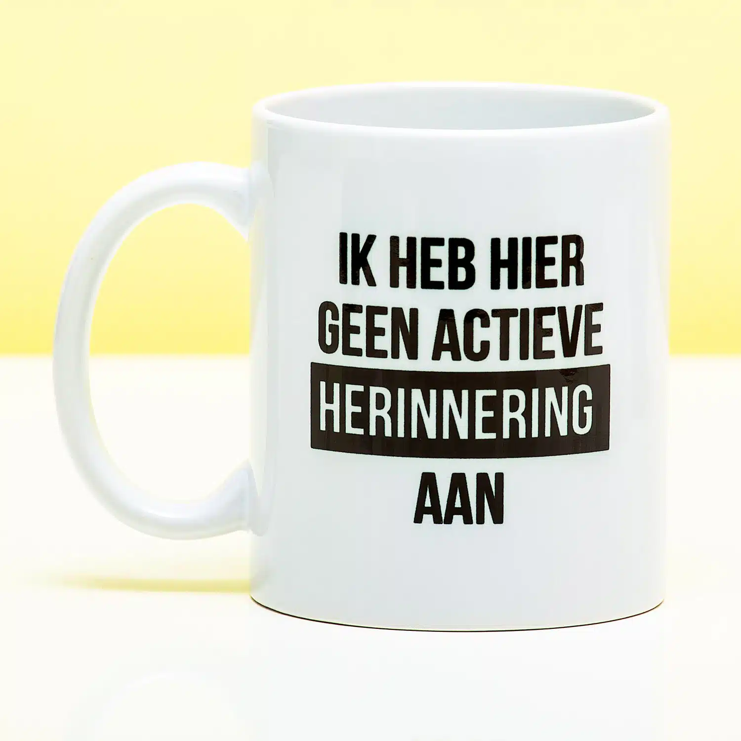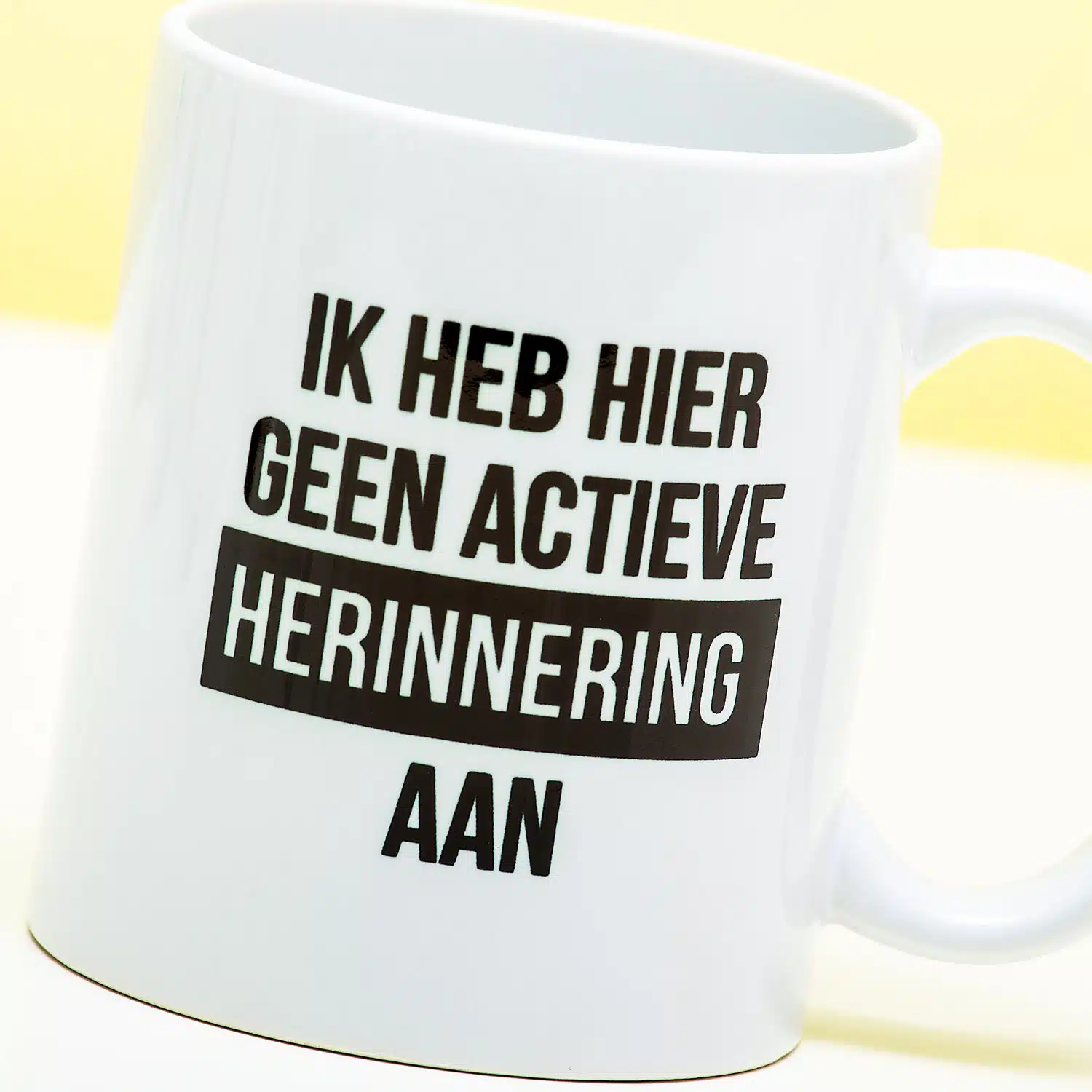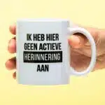 Je verantwoordelijkheid ontwijken? Dat doe je met de Mok Actieve herinnering. Op deze mok staat de tekst: Ik heb hier geen actieve herinnering aan. Een volkomen normale reactie om te ontkennen dat je bepaalde dingen hebt gezegd of gedaan.