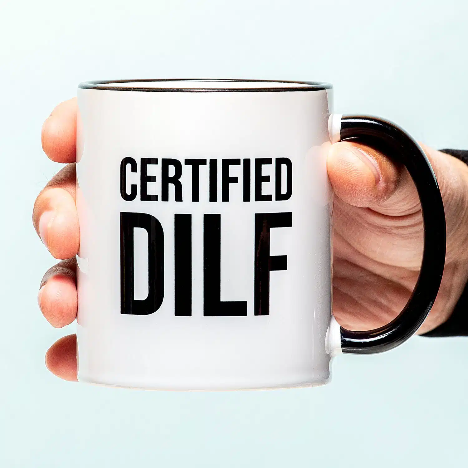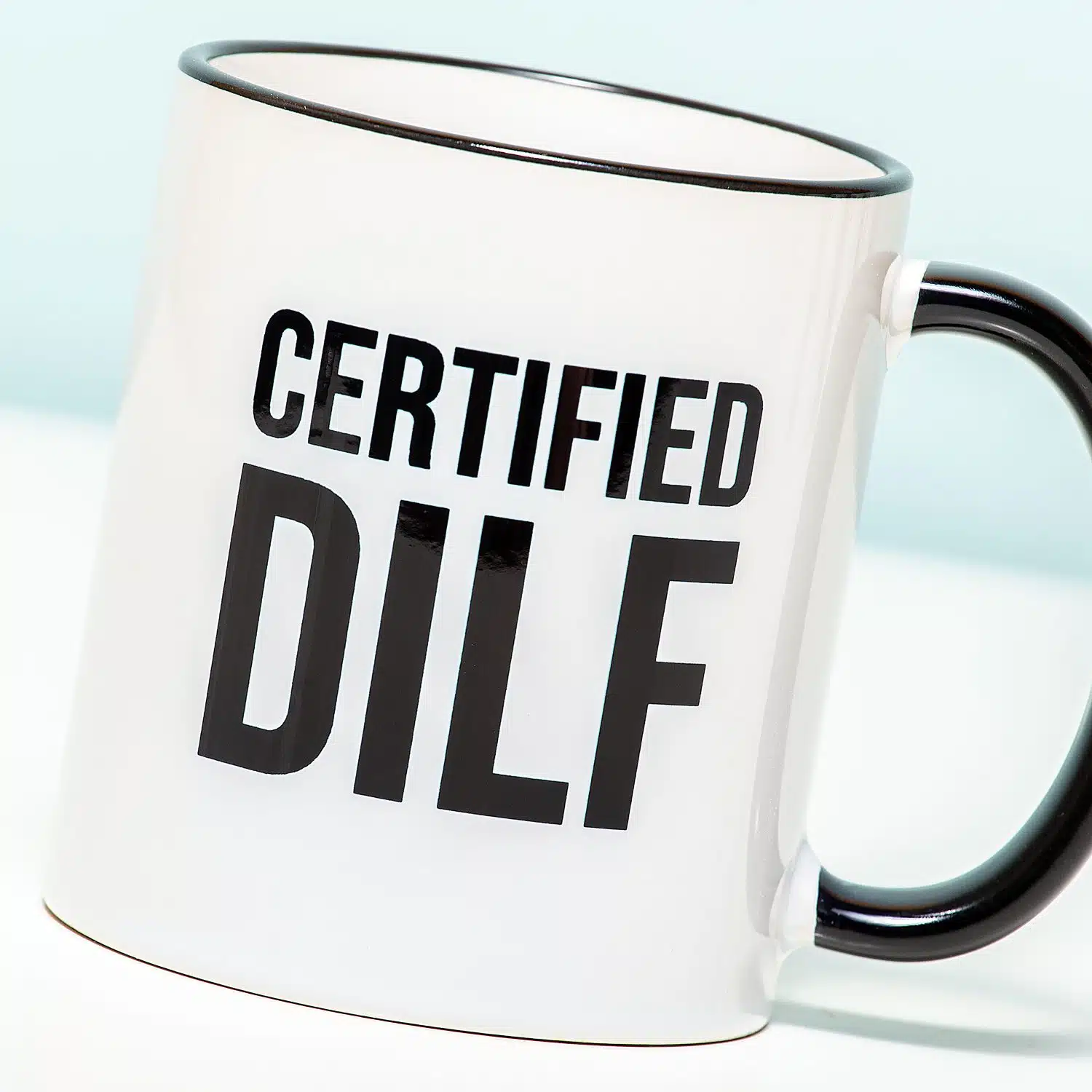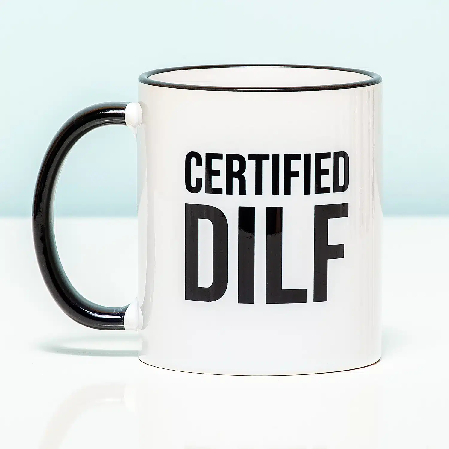 Toen hij je vroeger bij sportschool ophaalde, draaiden de hoofden al regelmatig om. En nog hoor je zo vaak hoe knap je pa eigenlijk is. Soms irriterend, maar eigenlijk ook wel iets om trots op te zijn. Op deze beker, die je hem geeft voor Vaderdag of gewoon zo, staat de tekst: Gecertificeerd DILF. En zeg nou, die titel heeft ie zelf verdiend!