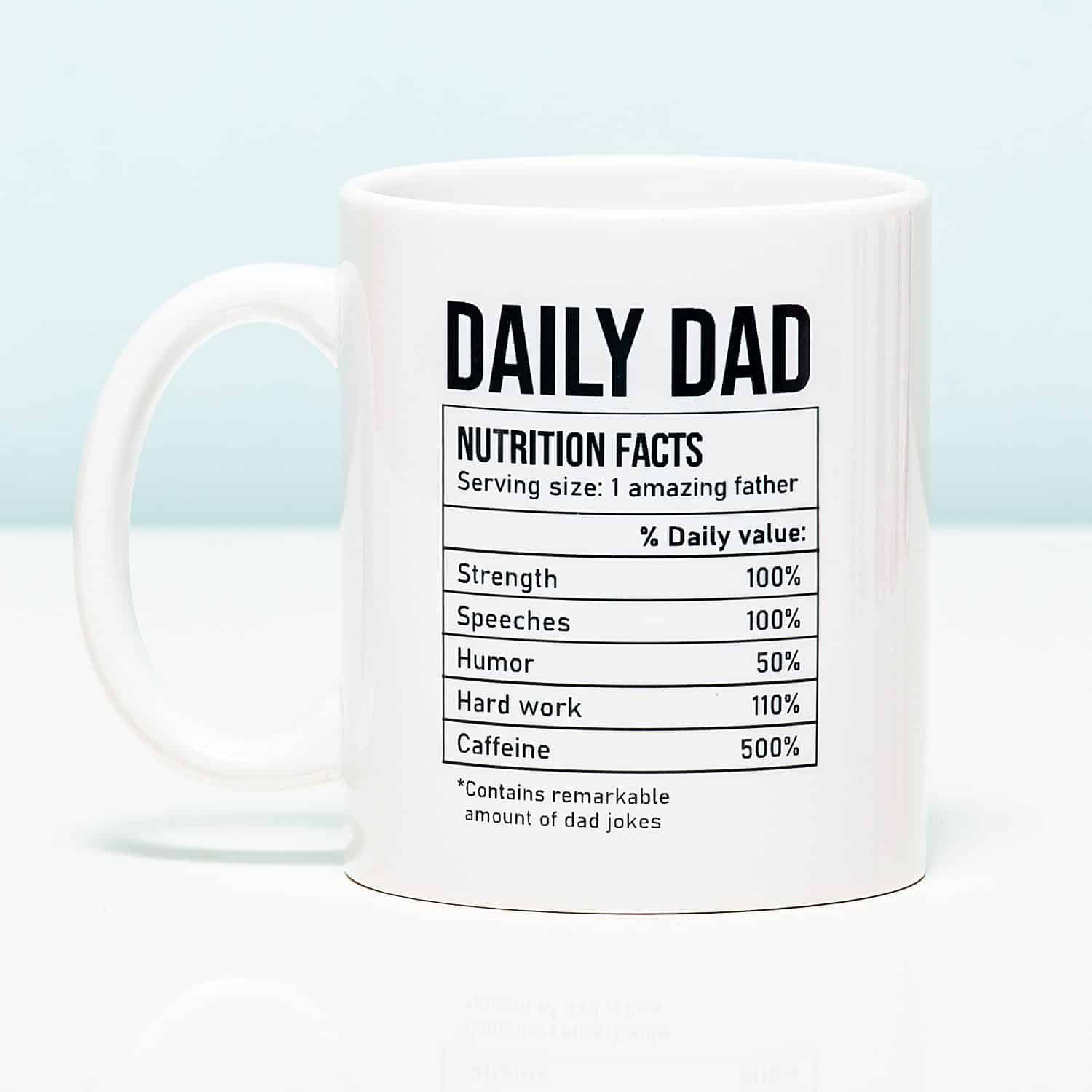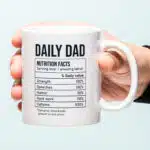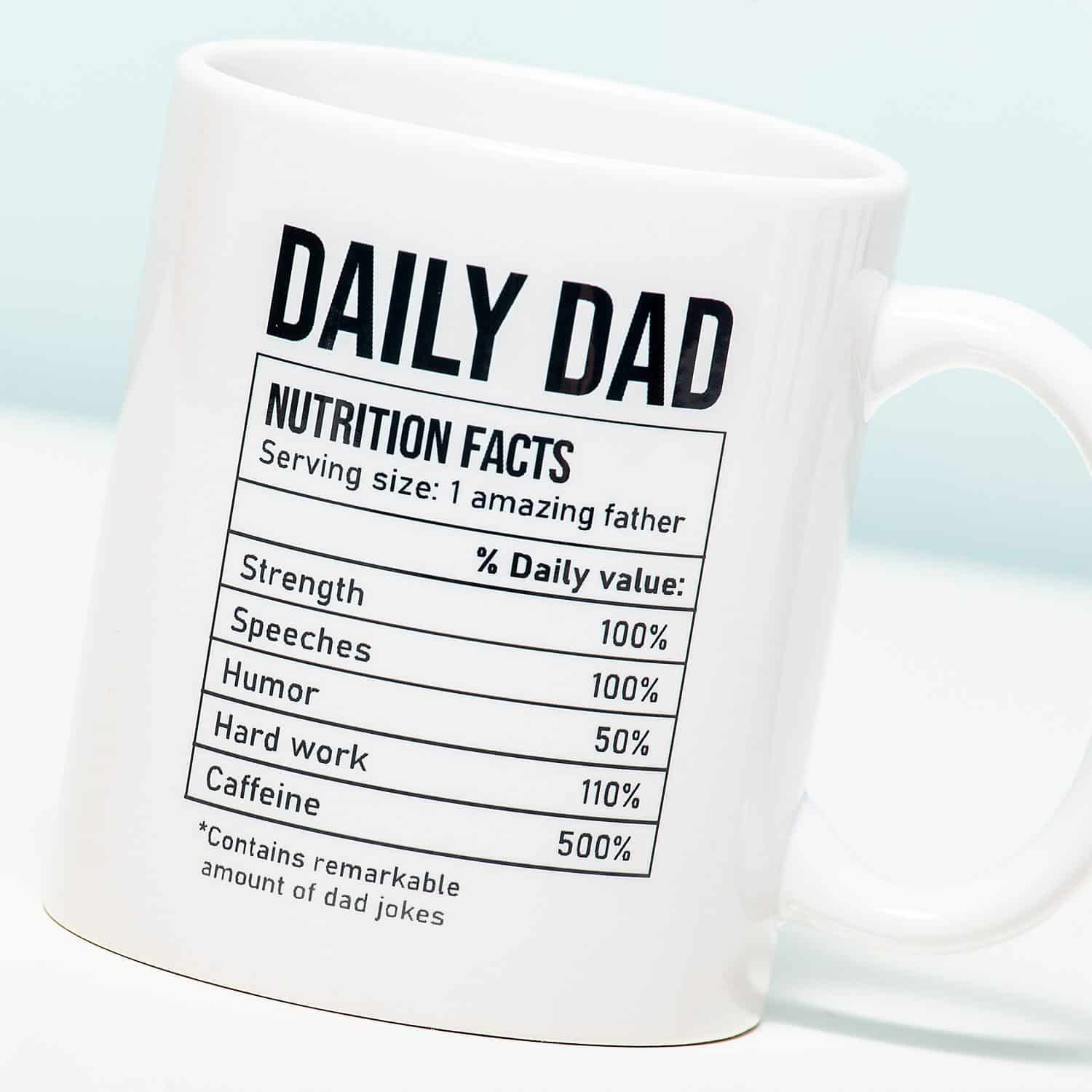 Voor de tofste vader. Zo één die er altijd voor je is, die alles aankan. De pa ontmoette humor. Waarvan het niet erg is dat je er meer op lijkt. Speciaal voor zo’n vader is deze mok. Op de beker staan de Daily Dad Nutrition weetjes voor 1 geweldige vader. Geef ‘m cadeau op Vaderdag. Of gewoon om te laten zien hoe gaaf jouw pa is.