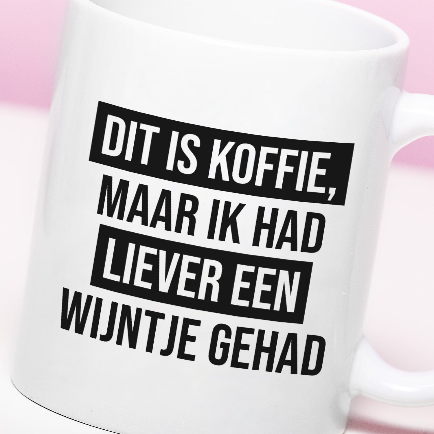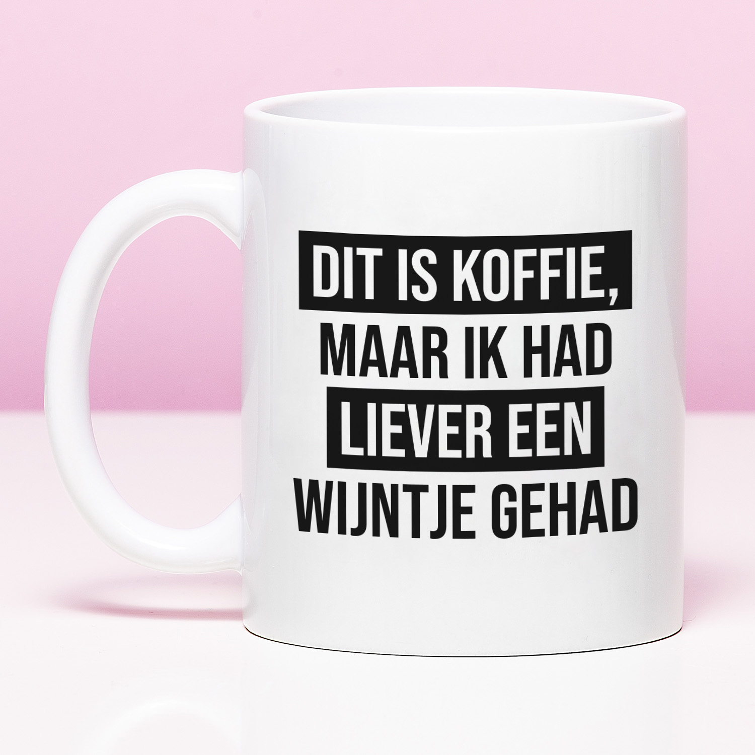 De Mok Dit is koffie, maar ik had liever een wijntje gehad is een hilarische mok voor mensen die hun voorkeur niet onder stoelen of banken steken. Perfect voor thuis of kantoor.