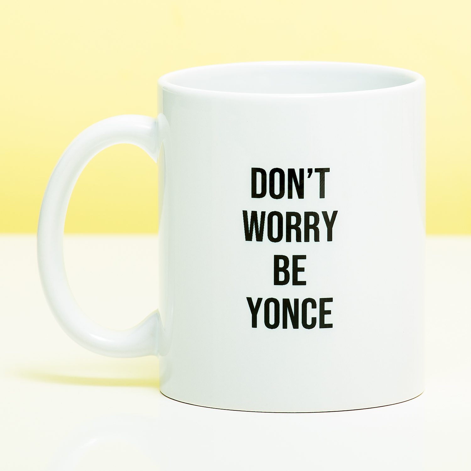 Groot fan van Beyonce? Voor iedereen in de Bey hive hebben we een leuk cadeau-idee: onze Mok Don’t Worry Be Yonce. De mok is een grappige variant op de don’t worry, be happy uitspraak. Een vrolijke mok om ‘s ochtends je eerste kop koffie uit te drinken of om cadeau te geven aan een echte Beyonce fan.