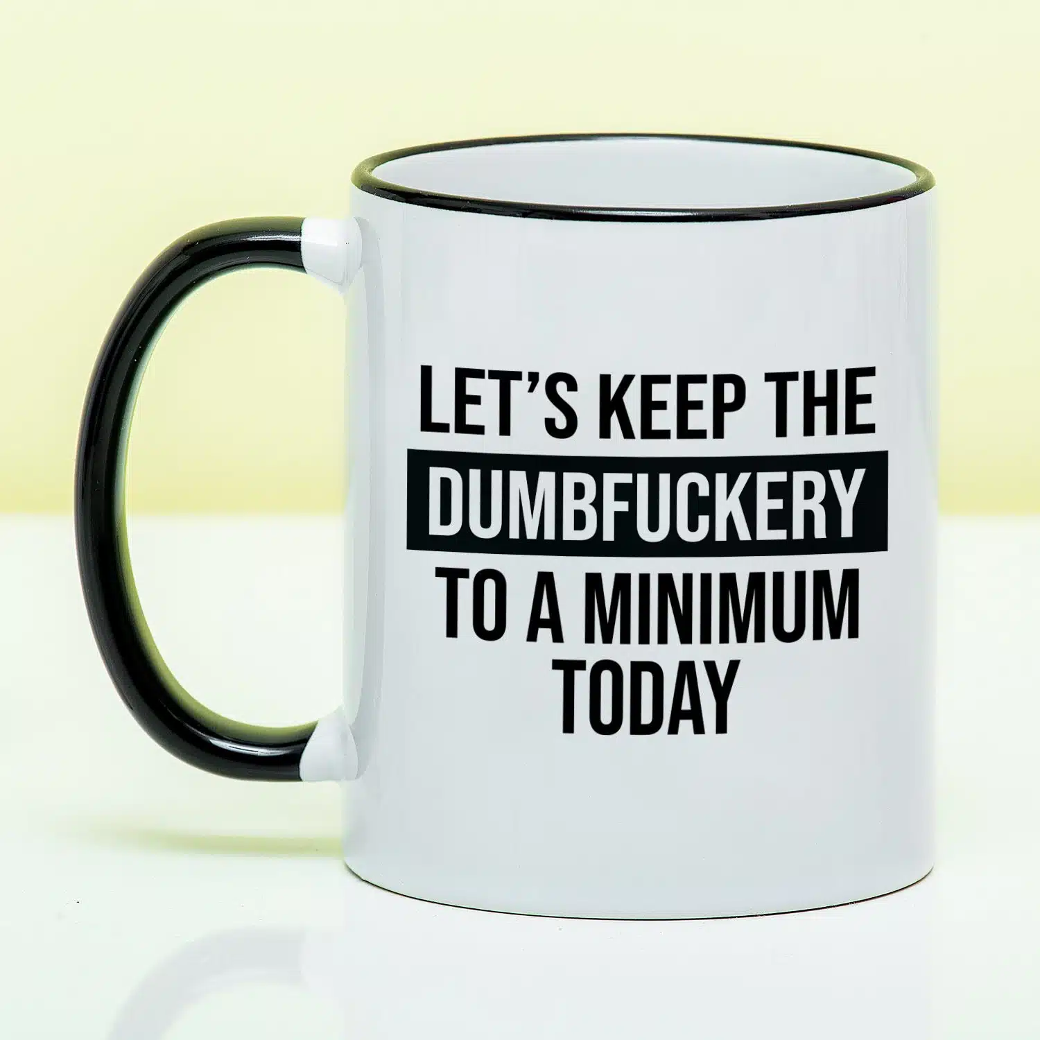 Zoek je een mok voor op het werk, waar je direct je collega’s mee aanspoort om hun werk fatsoenlijk te doen? Gebruik de Mok Dumbfuckery. Op deze koffiebeker staat de tekst: Let’s keep the dumbfuckery to a minimum today. Als je deze meeneemt in een vergadering, laat je duidelijk zien wat de bedoeling is zonder dat je het hoeft te zeggen.