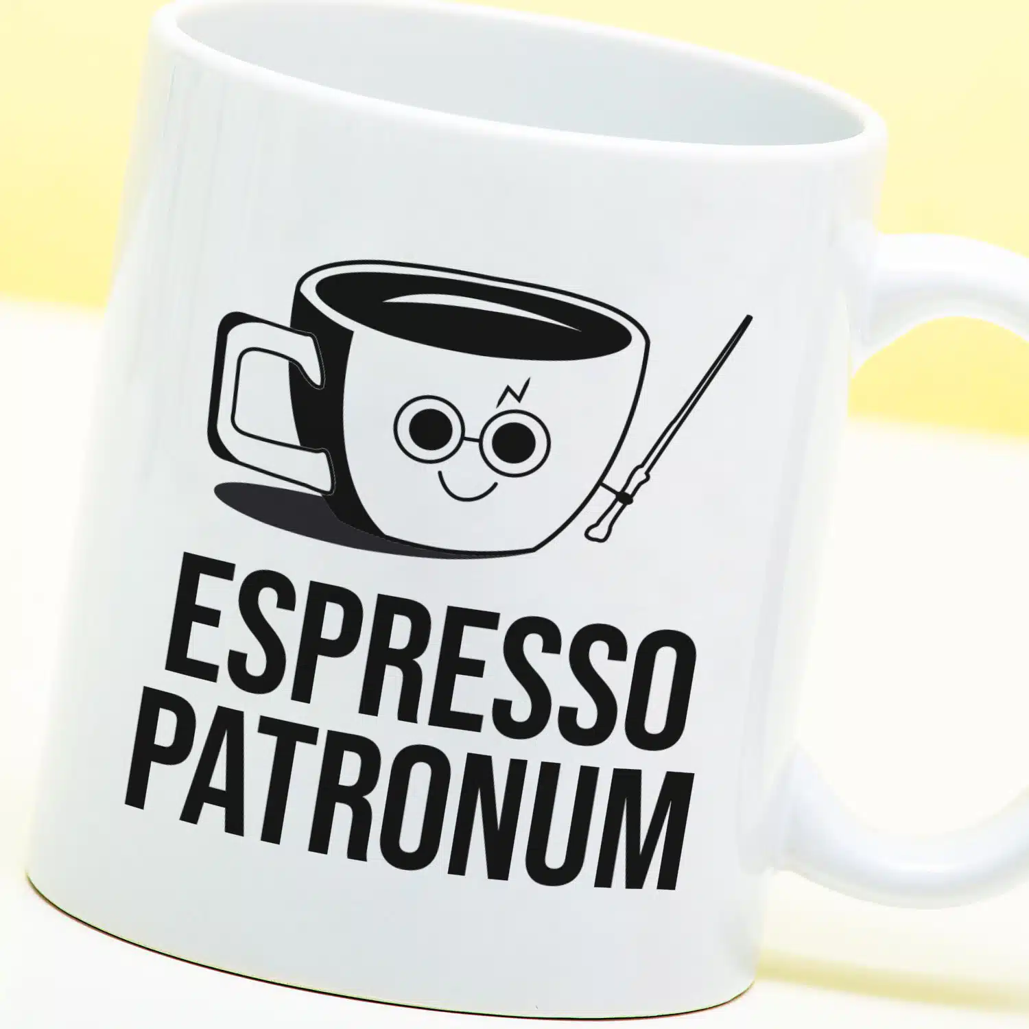 De Mok Espresso Patronum is voor iedereen die koffie nodig heeft om de dag door te komen. Met een vrolijk koffiekopje-figuurtje dat een toverstaf vasthoudt en de tekst Espresso Patronum, is dit de perfecte mok voor Harry Potter-fans die zonder hun dagelijkse shot espresso geen Dementors aankunnen.
