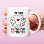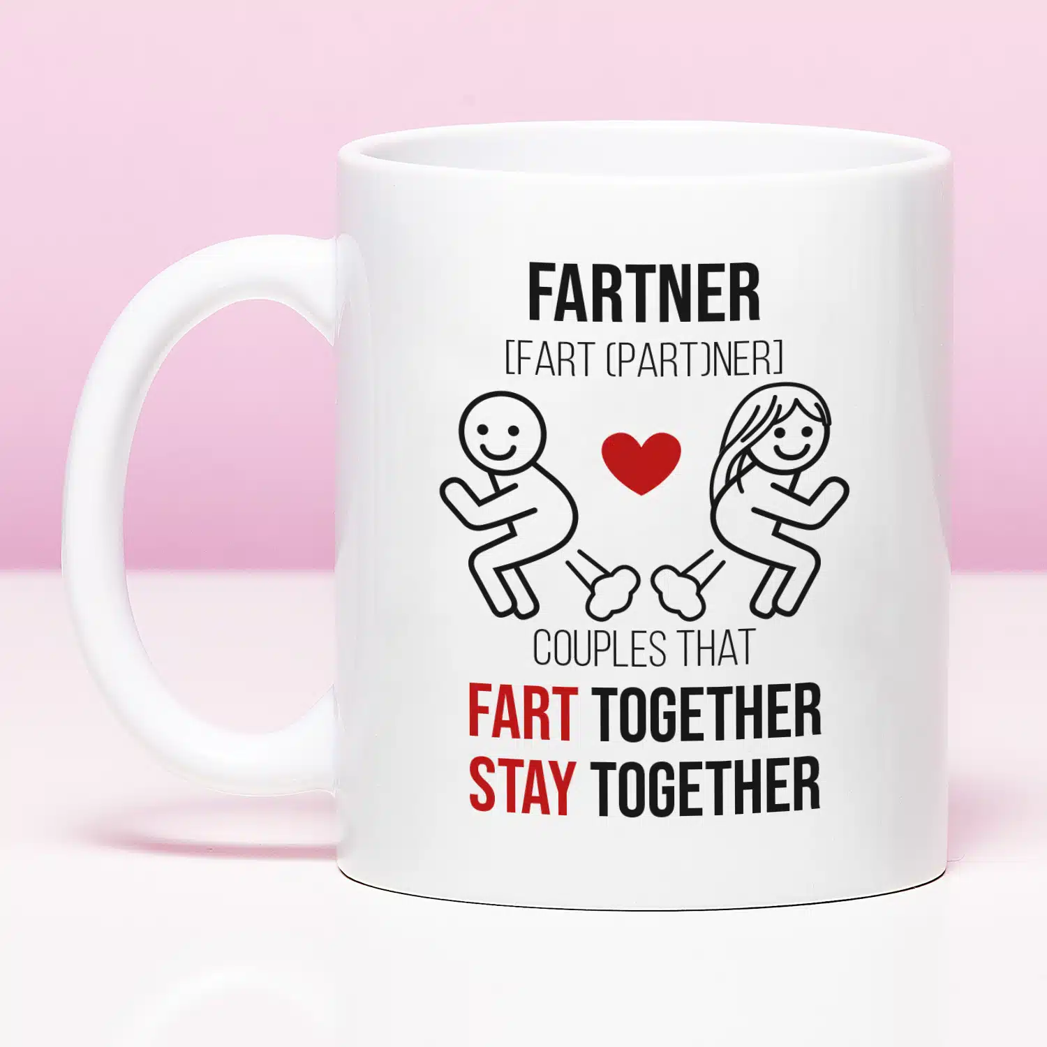 De Mok Fartner is speciaal voor stellen die écht alles samen doen, ook scheten laten. Met de tekst Couples that fart together stay together is dit een hilarische mok voor koppels met zelfspot.
