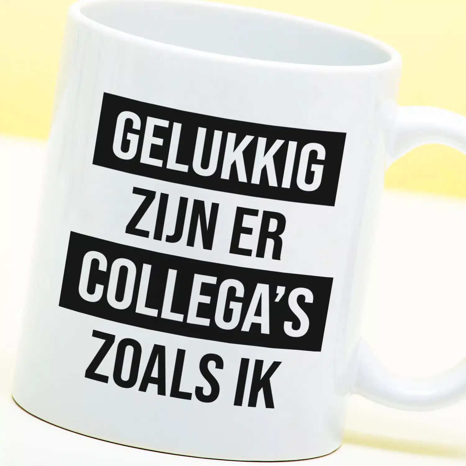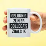 De Mok Gelukkig zijn er collega’s zoals ik is dé beker voor iedereen die vindt dat hij of zij de boel draaiende houdt op kantoor. Zonder jou zou het chaos zijn, toch? Een hilarisch cadeau voor de collega die zichzelf nét iets te serieus neemt, of juist voor jezelf, omdat het gewoon waar is.