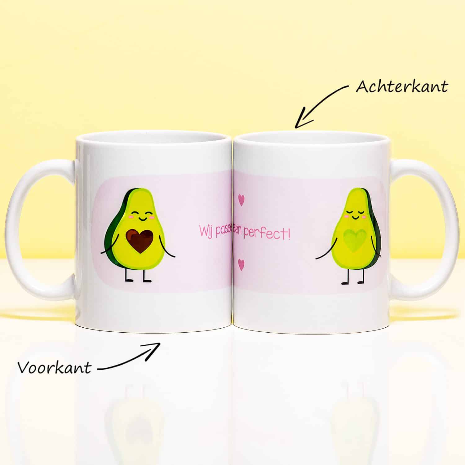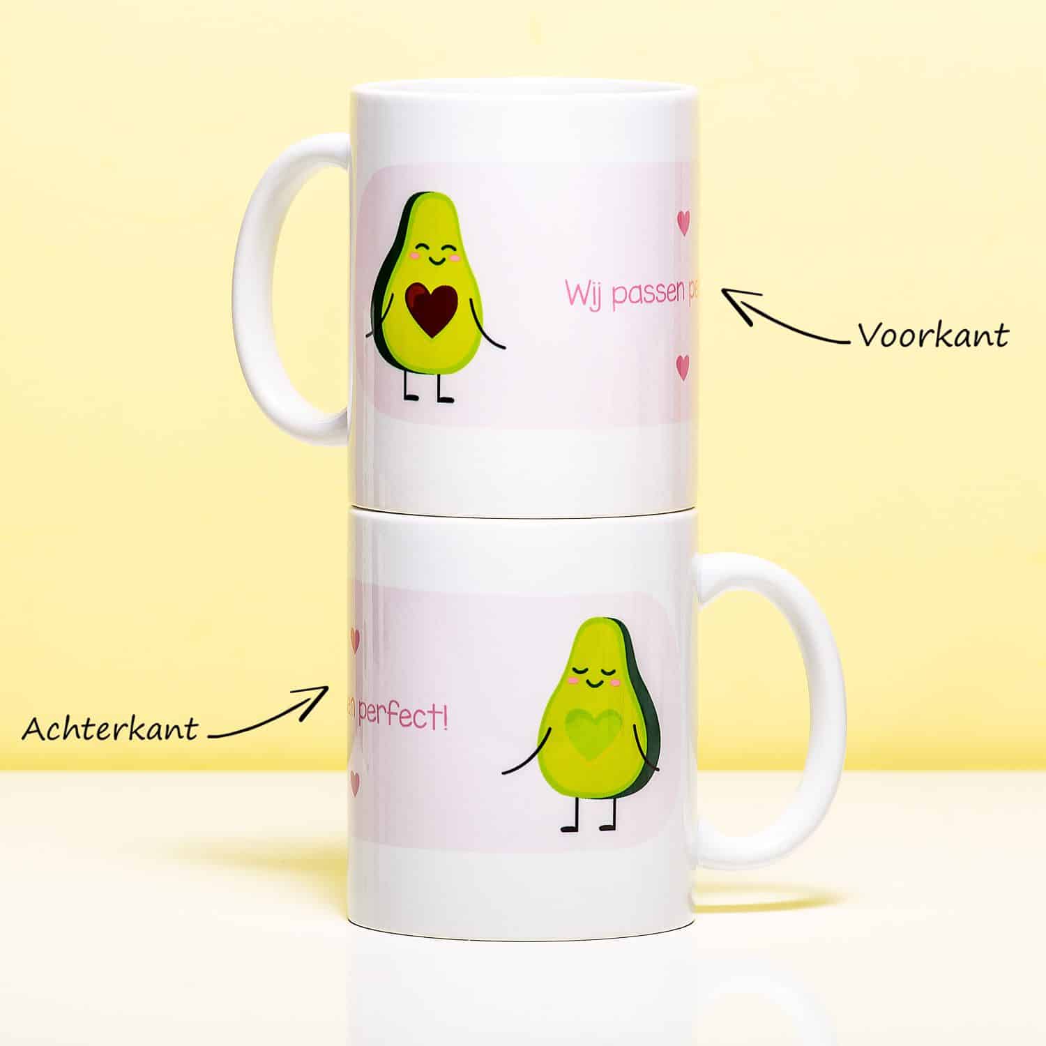 De liefde voor avocado’s is de laatste jaren groot: heel groot. Is jouw lief ook dól op de groene vrucht? Geef de Mok Holy Guacamole haar dan cadeau. Deze schattige mok laat twee verliefde avocadohelften zien, met de tekst: wij passen perfect! Zo denkt ze elke dag aan jou.