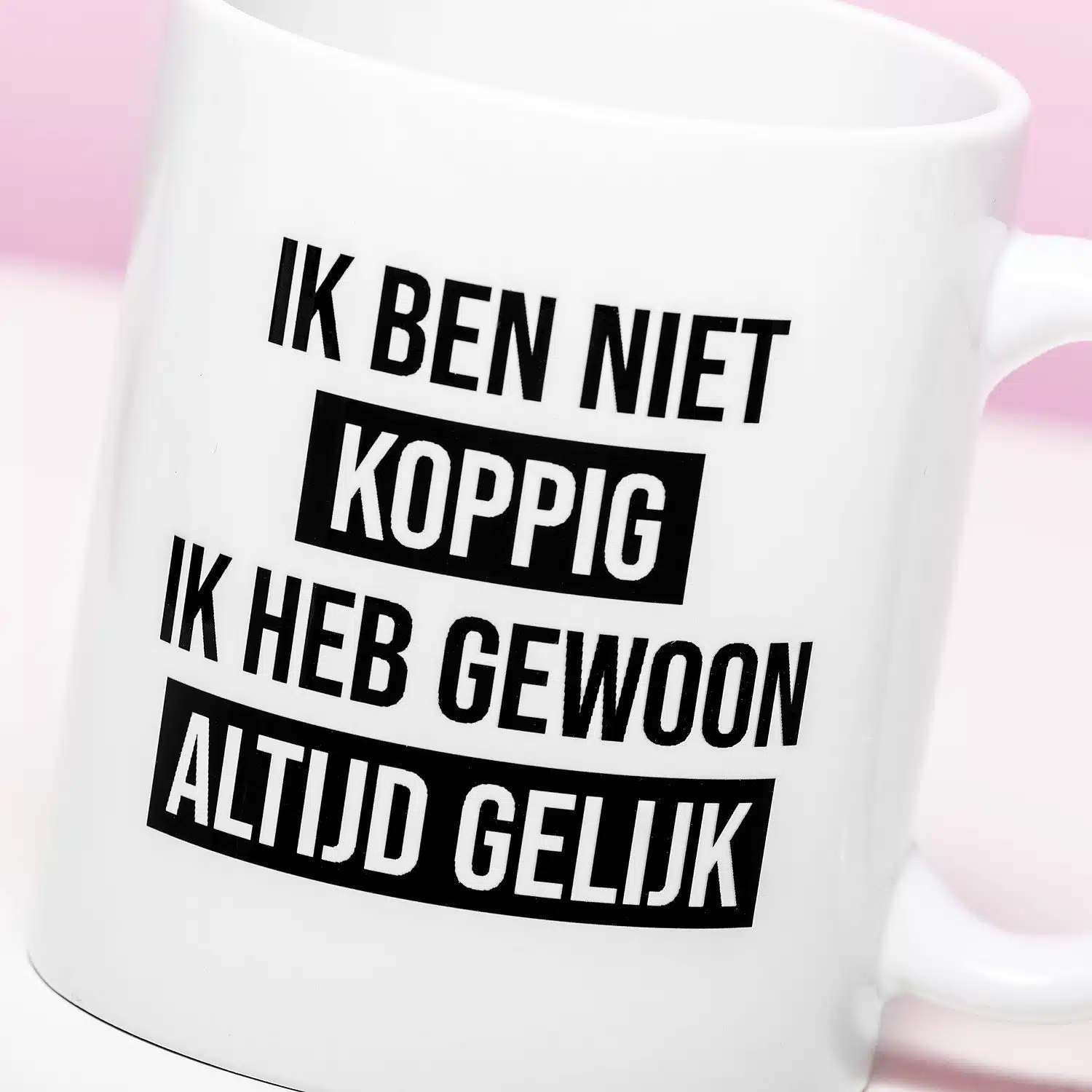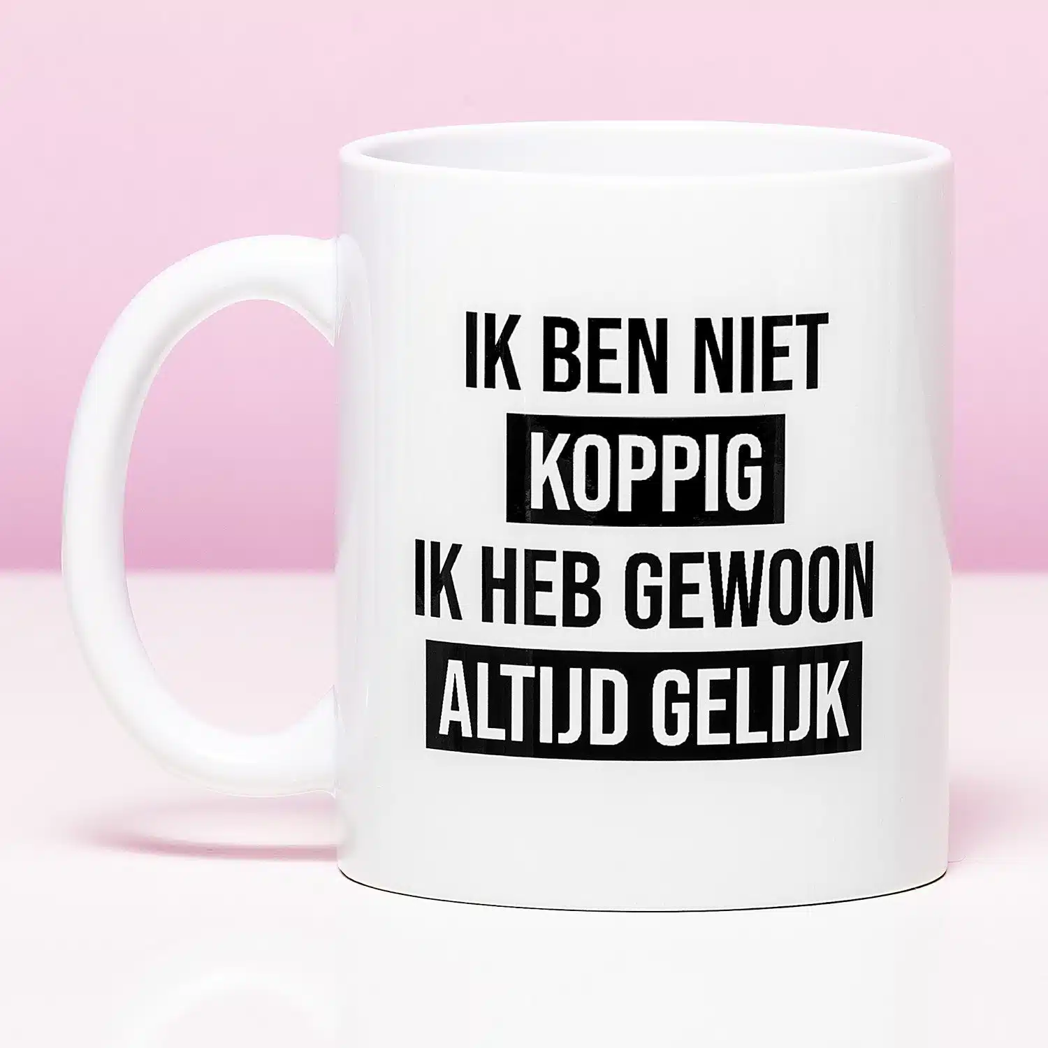 Van collega’s die alles beter weten tot je partner die altijd het laatste woord wil hebben: deze beker is voor hen. De Mok Ik ben niet koppig is het perfecte cadeautje voor die stronteigenwijze persoon. Op de beker staat de tekst: Ik ben niet koppig, ik heb gewoon altijd gelijk. De beker is leuk voor op het werk, maar ook om te gebruiken bij het ontbijt. Zo weet je vriend of vrouw direct dat hij of zij je niet hoeft tegen te spreken. Want jij hebt toch gelijk!