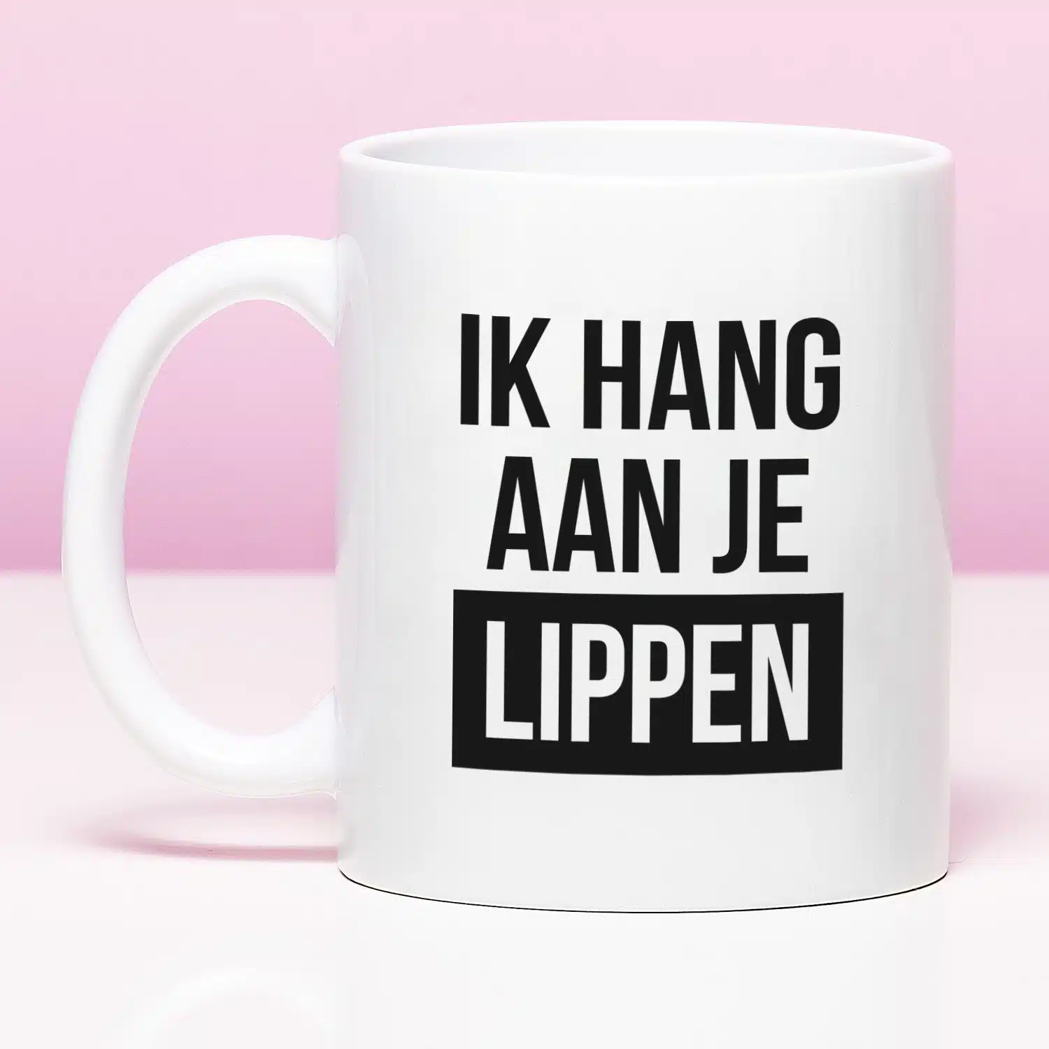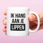Vertel me meer, ik hang aan je lippen! Met de Mok Ik hang aan je lippen nodig je mensen om lekker te komen kletsen tijdens het werk. Deze grappige mok, met daarop de tekst Ik hang aan je lippen, laat zien dat jij het reuze gezellig vindt om te kleppen bij de koffieautomaat. En natuurlijk is het ook een leuke manier om aan die ene speciale collega te laten zien dat jij meer dan gewoon geïnteresseerd bent.