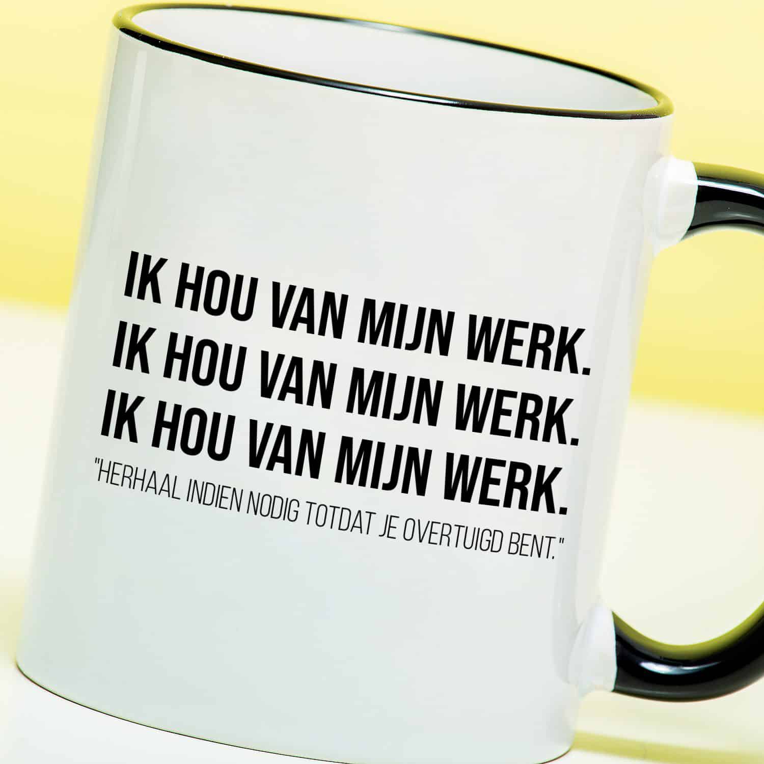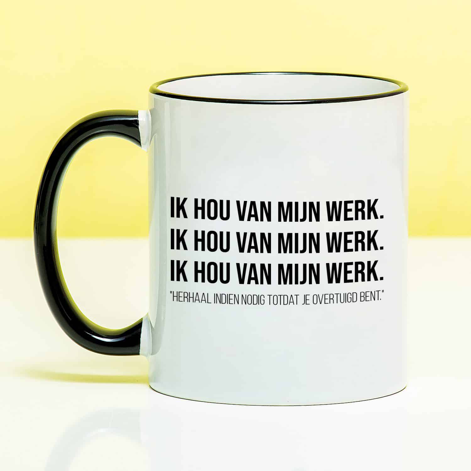 De Mok Ik hou van mijn werk is een humoristische beker voor op het werk. Op de beker staat de tekst: Ik hou van mijn werk en daaronder: Herhaal indien nodig totdat je overtuigd bent.