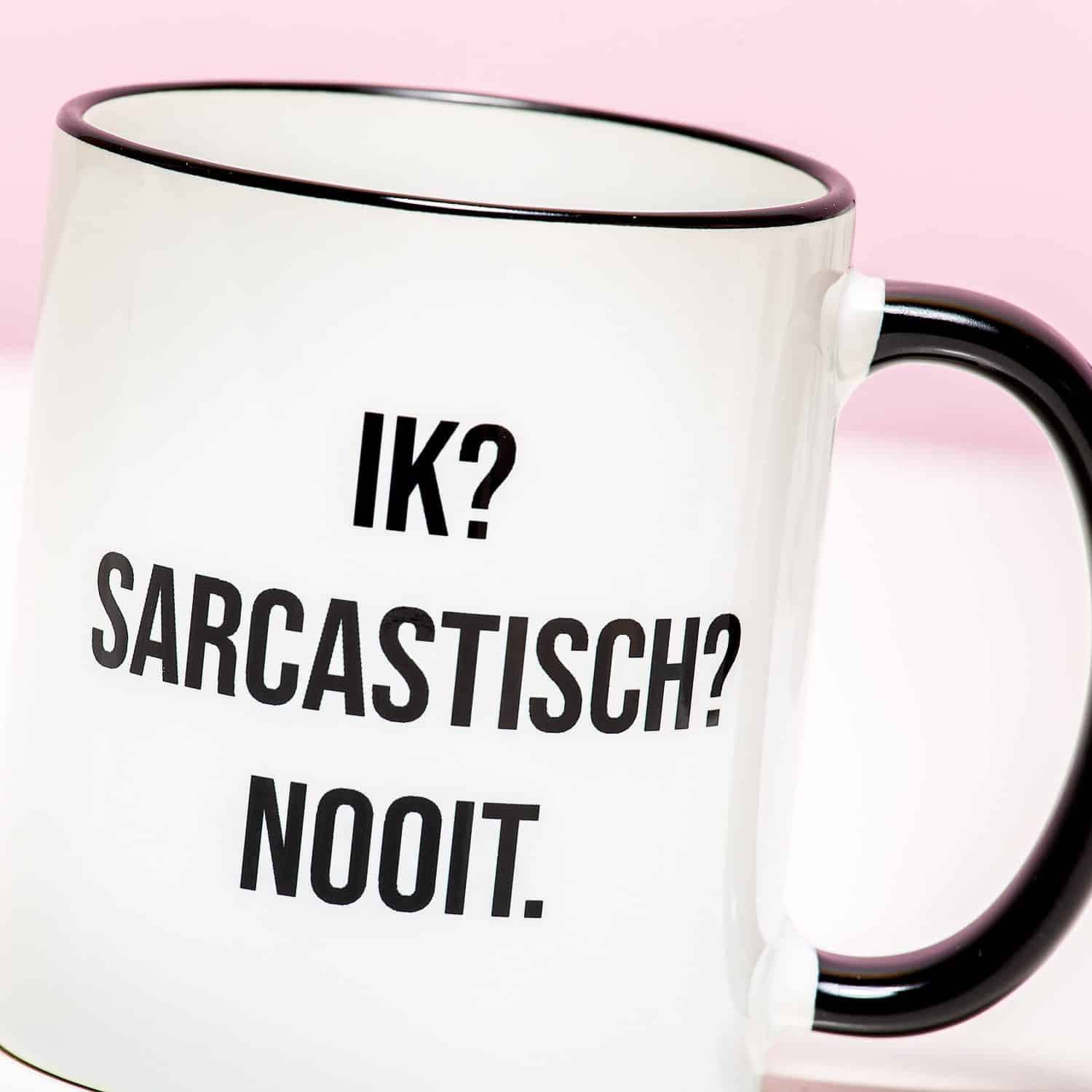 Een venijnige steek onder water of een sarcastische opmerking? Nee, dat zou jij nóóit doen. De Mok Ik sarcastisch past dan ook helemaal niet bij jou. Of toch? Op deze grappige koffiebeker staat de tekst: Ik? Sarcastisch? Nooit. Een leuk cadeautje voor mensen die nooit een normale opmerking kunnen maken en altijd sarcastisch uit de hoek komen.