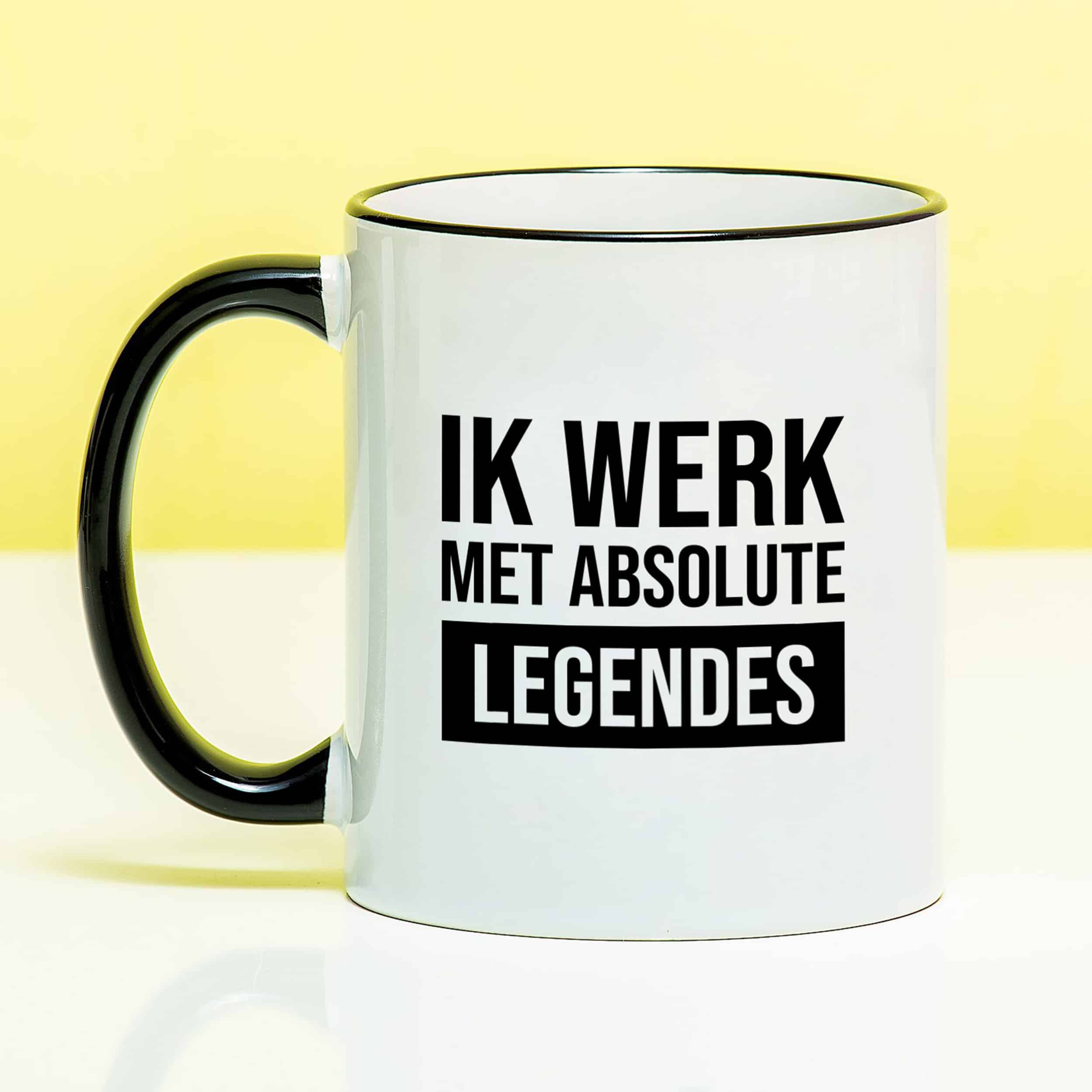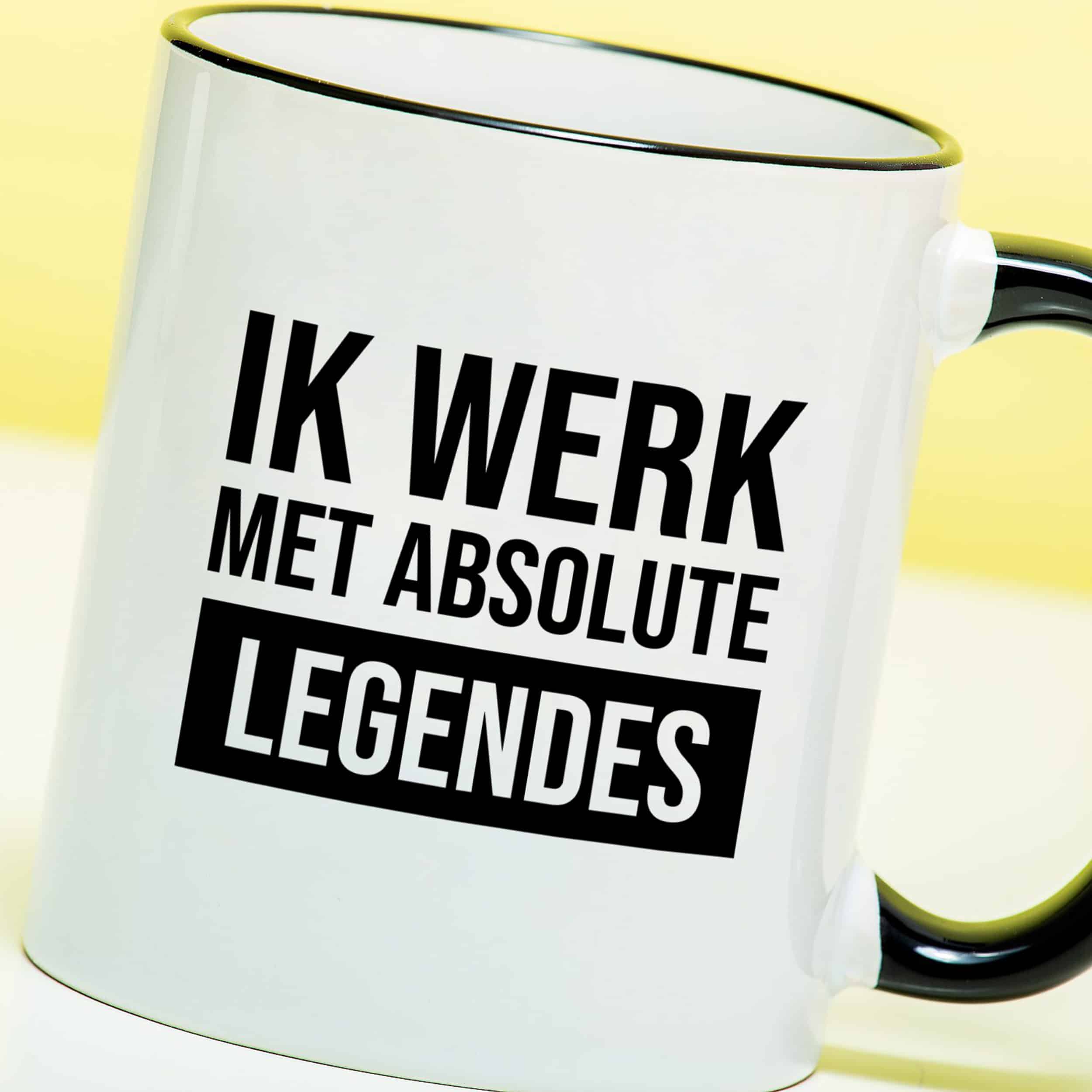 De Mok Ik werk met absolute legendes is een ode aan je collega’s. Perfect om tijdens de koffiepauze subtiel (of minder subtiel) te laten weten hoe geweldig je team is. Een grappige en motiverende koffiemok voor de werkplek.