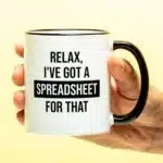 We hebben allemaal wel zo’n georganiseerde collega die het liefst álles in een spreadsheet zet. Voor deze persoon hebben wij een toepasselijke mok: de Mok I’ve got a spreadsheet for that. Zie je het overzicht even niet meer? Heb je geen idee wat je als eerst of laatste moet doet? Grote kans dat je collega het wel weet. Bedankt hem of haar met deze grappige mok, met de tekst: Relax, I’ve got a spreadsheet for that.
