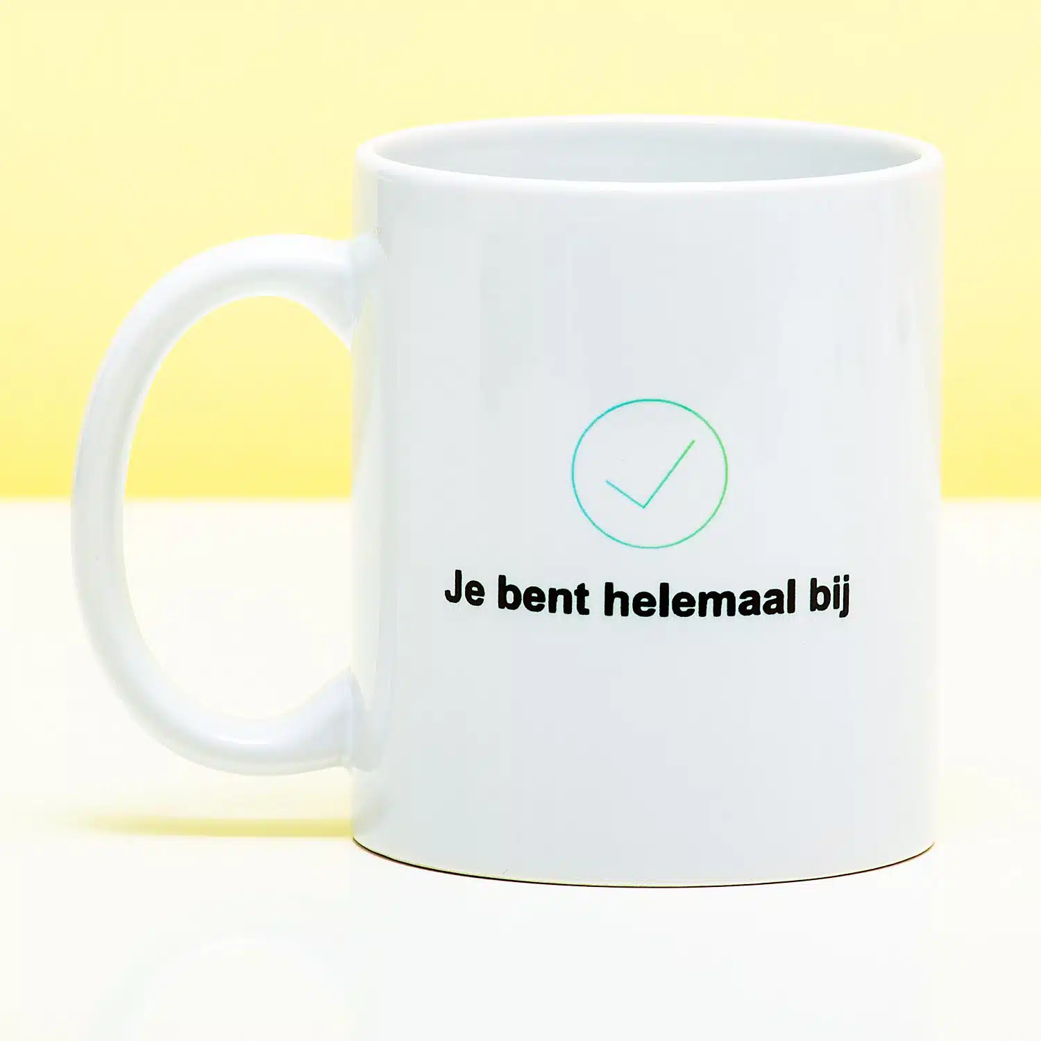 Dol op Instagram? Dan herken je dit vinkje, met de tekst ‘je bent helemaal bij’ vast wel. En geef het maar toe: eigenlijk zie je het vaker dan je wilt. De Mok Je bent helemaal bij is er speciaal voor de Insta-addict.