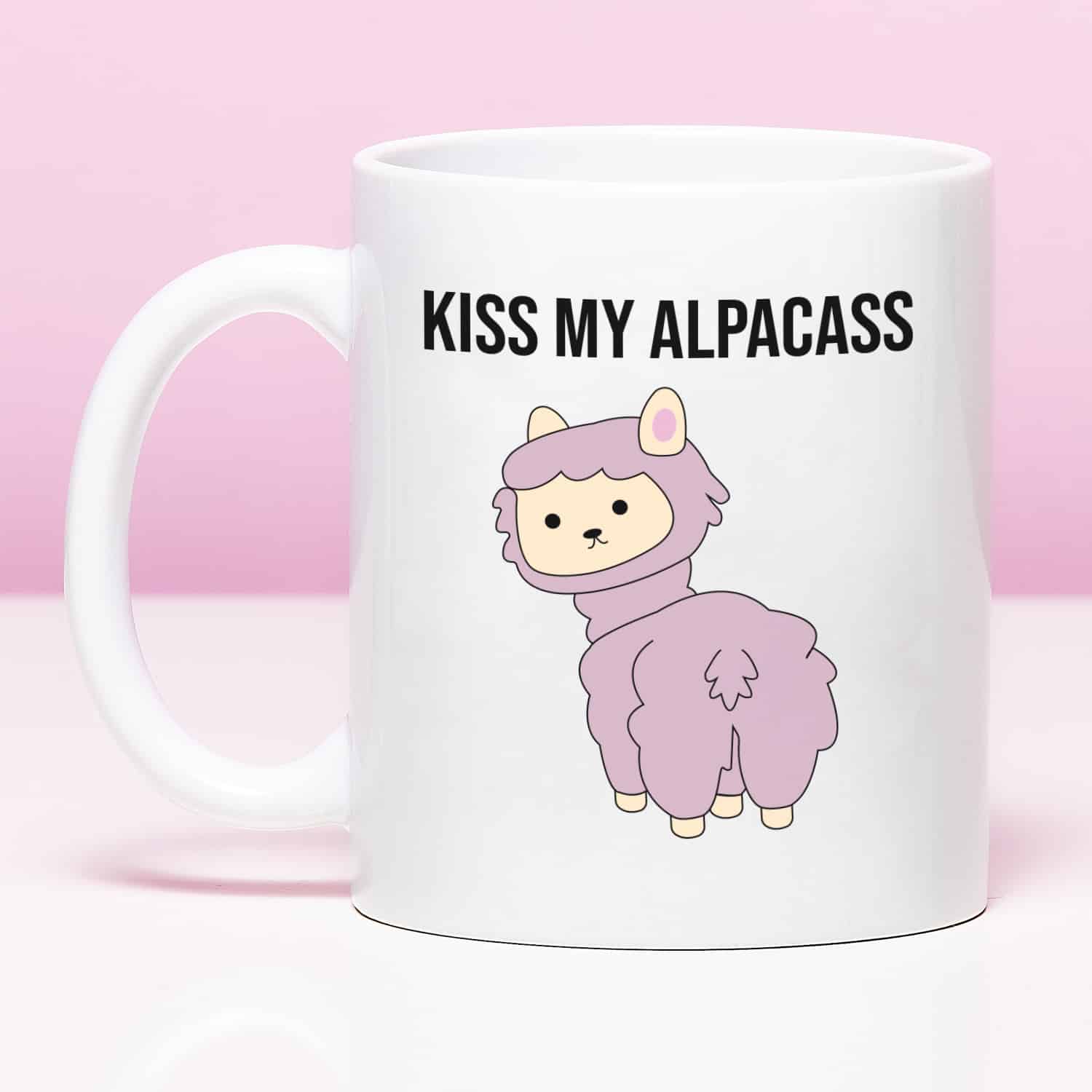 De Mok Kiss My AlpacASS is een hilarische koffiemok voor iedereen die van alpaca’s houdt, maar niet van gezeur. Op de beker staat een brutale alpaca die letterlijk zijn kont naar je keert. Een grappige en eigenwijze mok waarmee je je ochtendkoffie drinkt in stijl.