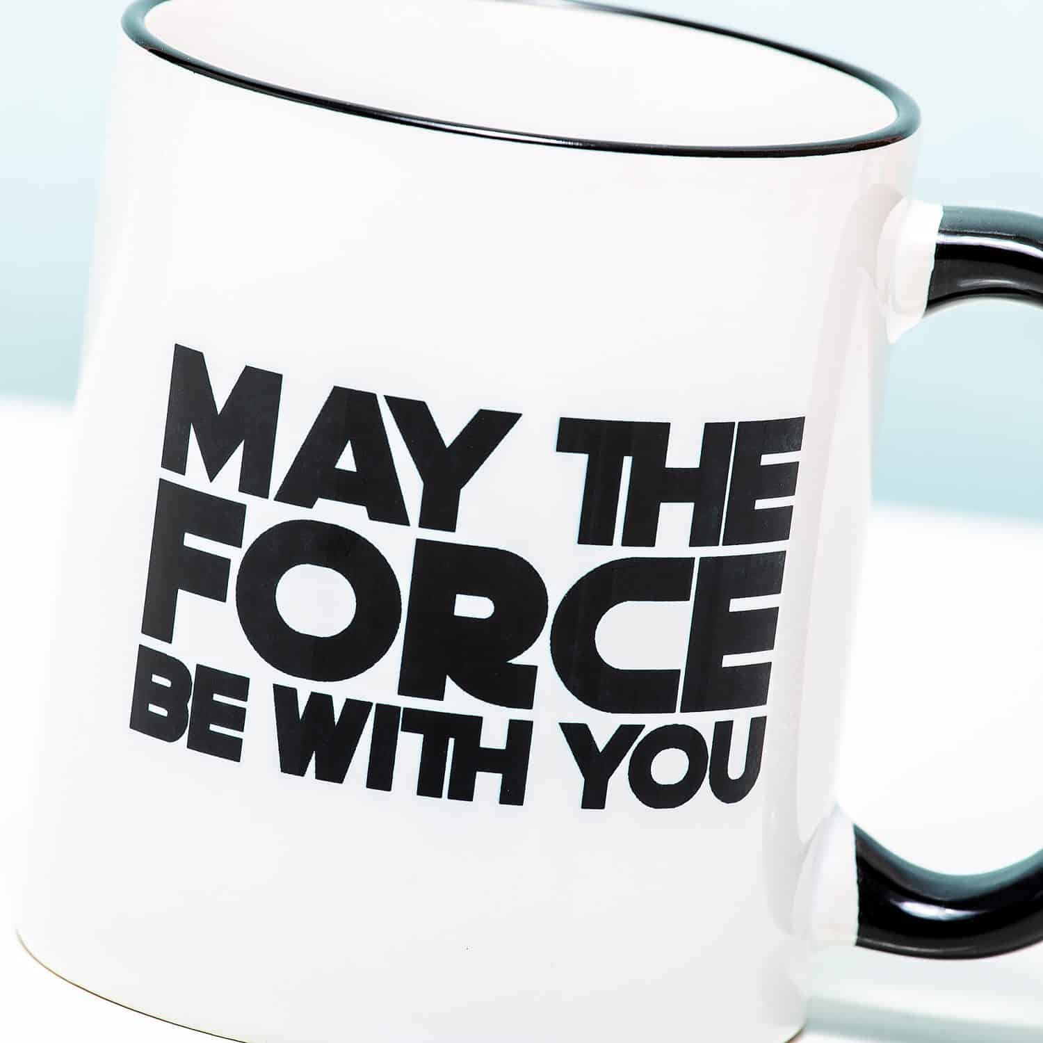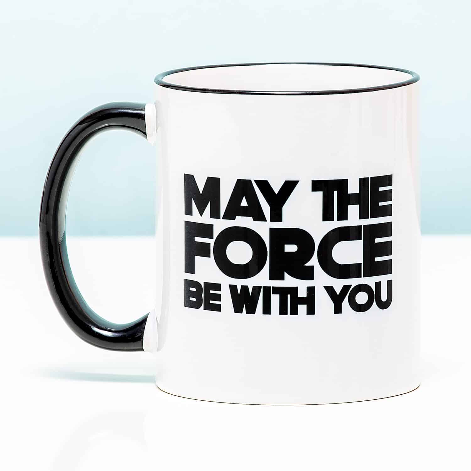 Hey Star Wars fan! Wij hebben wat leuks voor je: de Mok May the force be with you. Deze originele mok geeft je elke ochtend de kracht om weer vol goede moed aan de dag te beginnen. Door de tekst – May the force be with you – maar ook door de koffie die je er uit drinkt natuurlijk. Een leuk cadeautje voor wie maar geen genoeg krijgt van Star Wars.