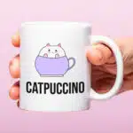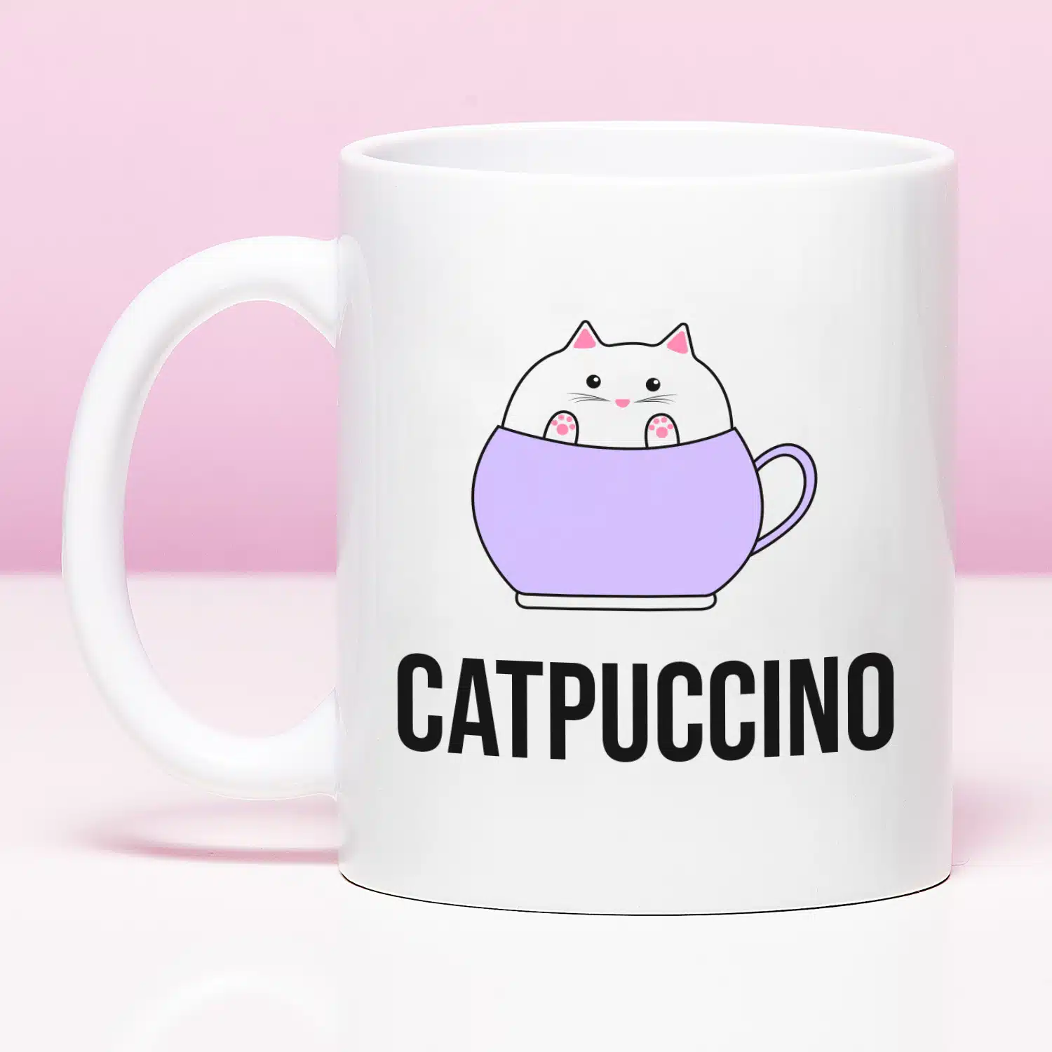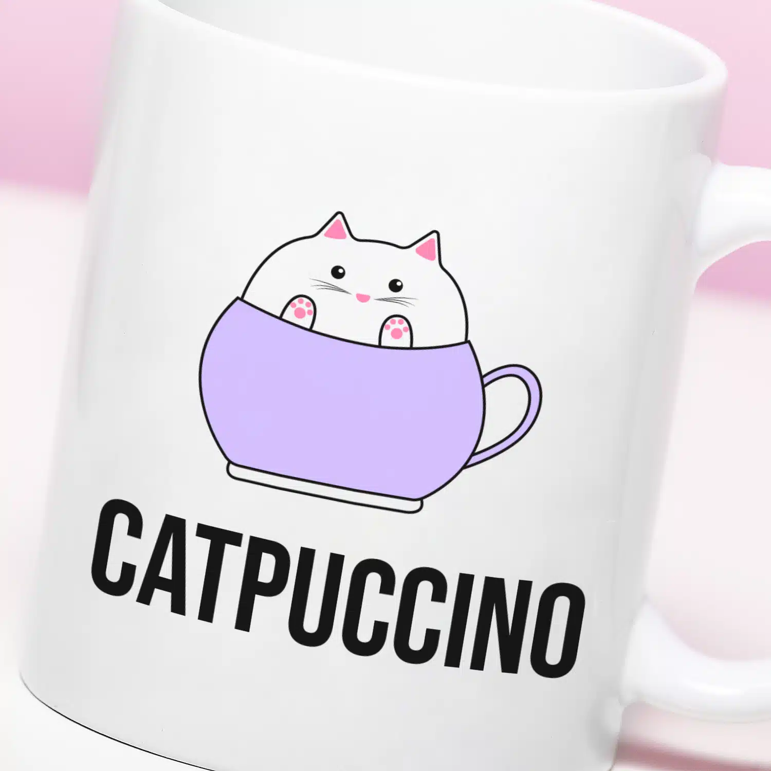 - Grappige mok met katten-illustratie en de tekst: Catpuccino