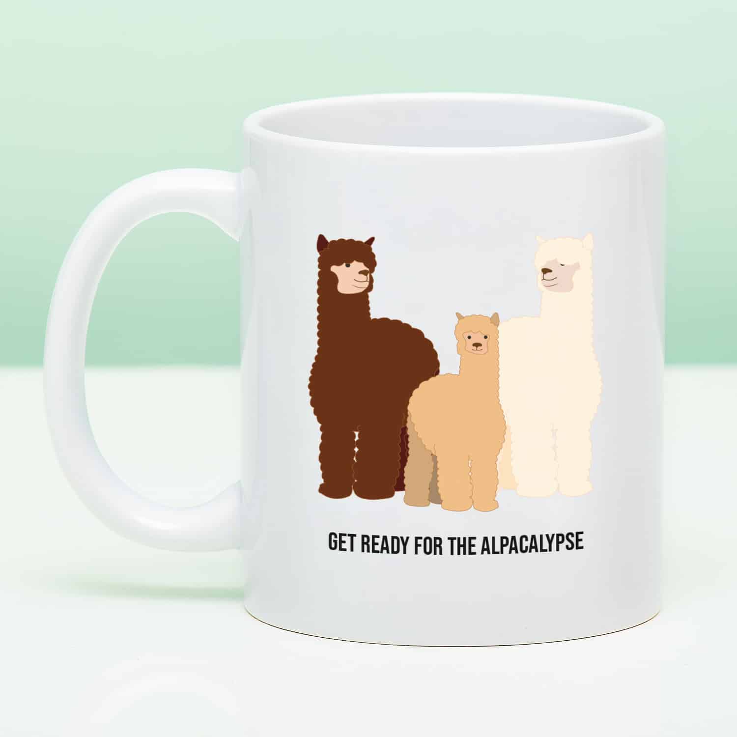 Mok met Tekst ‘’Get ready for the alpacalypse’’ | Materiaal: Keramiek | 33 cl | Mok met Tekst | Koffie Mok | Grappige Cadeau | Vaatwasser bestendig | Humor | Mok met grappige tekst