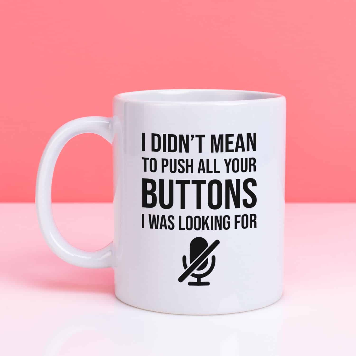 Mok met Tekst ‘’I didnt mean to push your buttons’’ | Materiaal: Keramiek | 33 cl | Mok met Tekst | Koffie Mok | Grappige Cadeau | Vaatwasser bestendig | Humor | Mok met grappige tekst