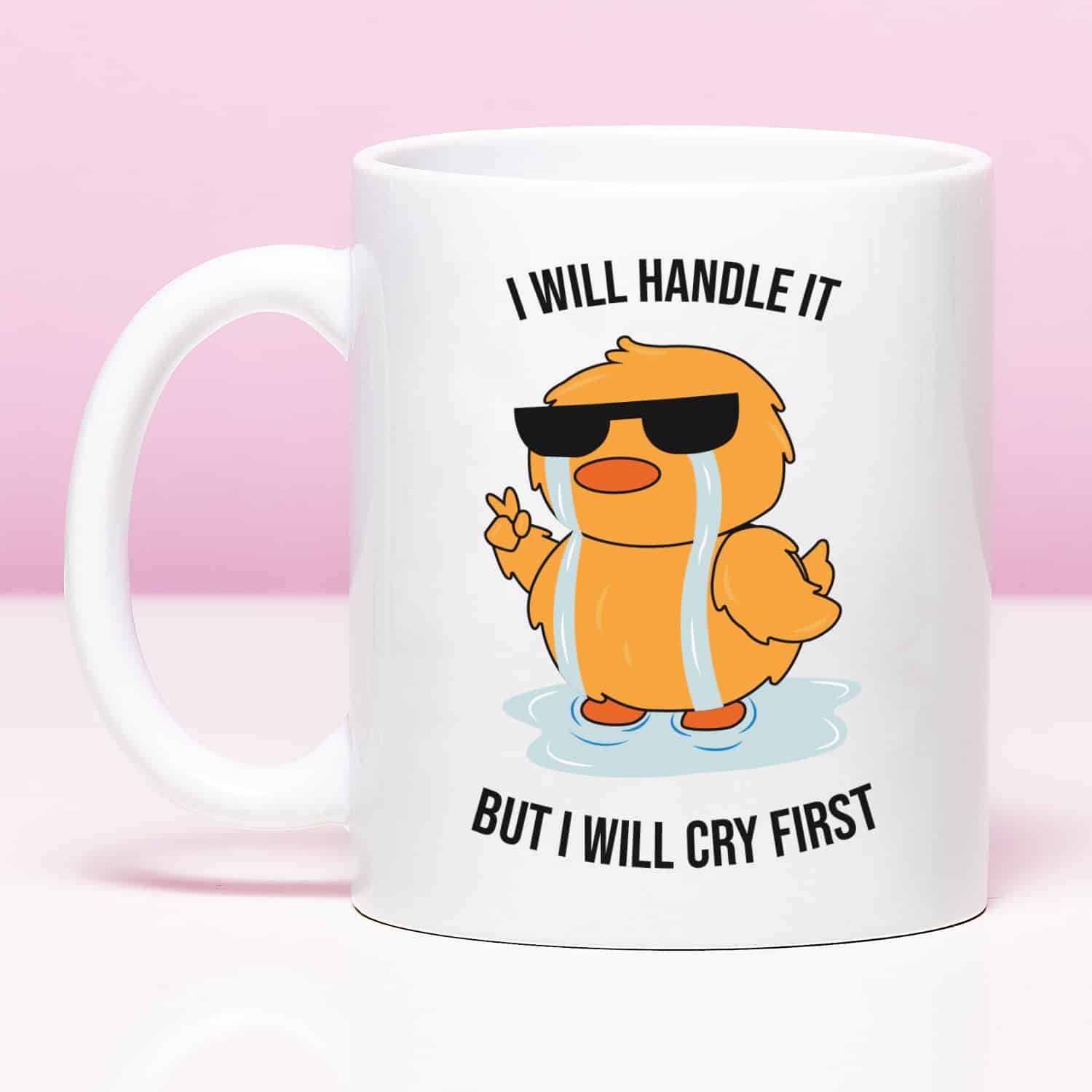 De Mok I Will Handle It is perfect voor iedereen die alles aankan, maar eerst even moet ventileren. Met de grappige eend in tranen en zonnebril is dit een mok vol zelfspot én herkenbaarheid. Een must-have voor thuis of op kantoor.